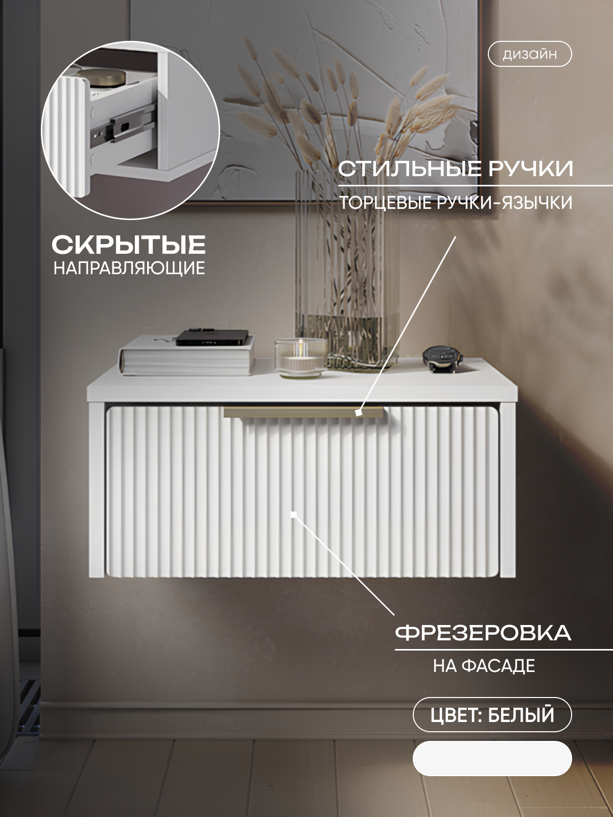 Тумба ARNIKA "Хилл", подвесная, ЛДСП, цвет белый, 20 см x 45 см x 35 см информация: