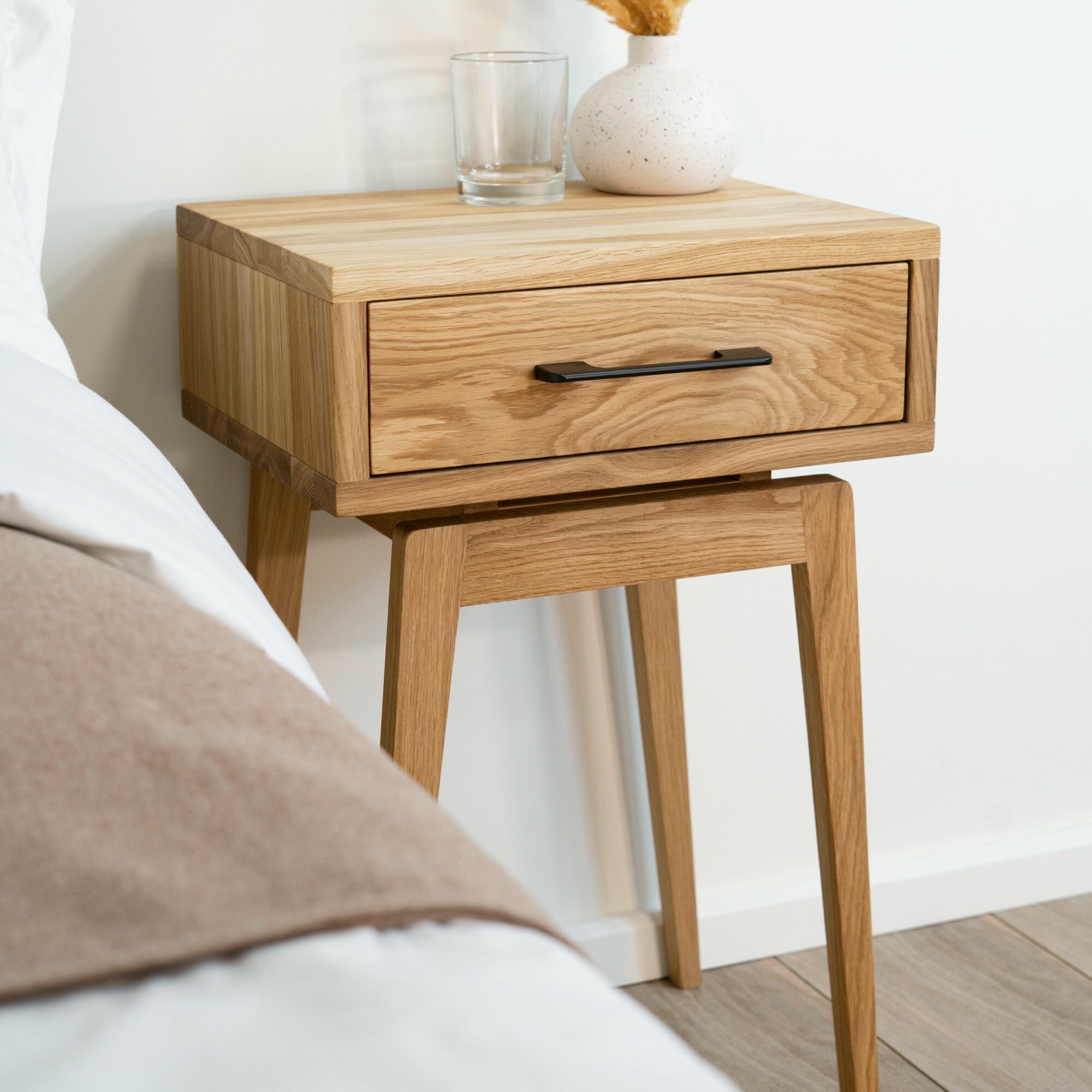 10 цен на Тумба прикроватная Zolo из массива дуба. Высота 50 см. Парящий корпус 30х39 см.