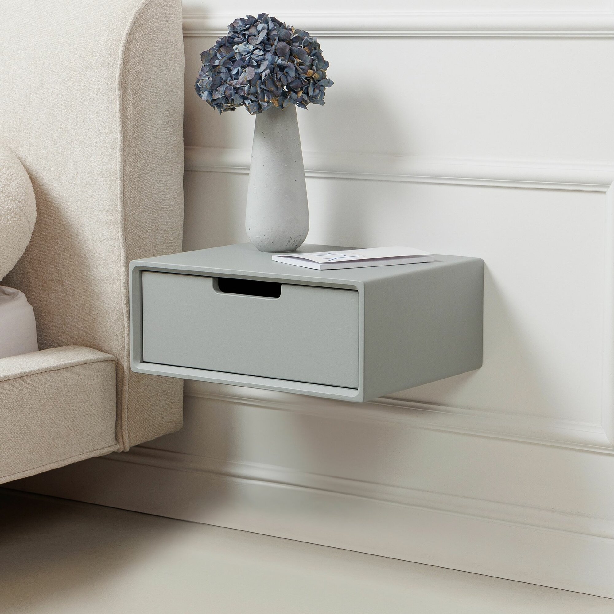 Тумба прикроватная подвесная из дерева 45x35x18, покрытие эмаль, цвет серый 13 500 ₽