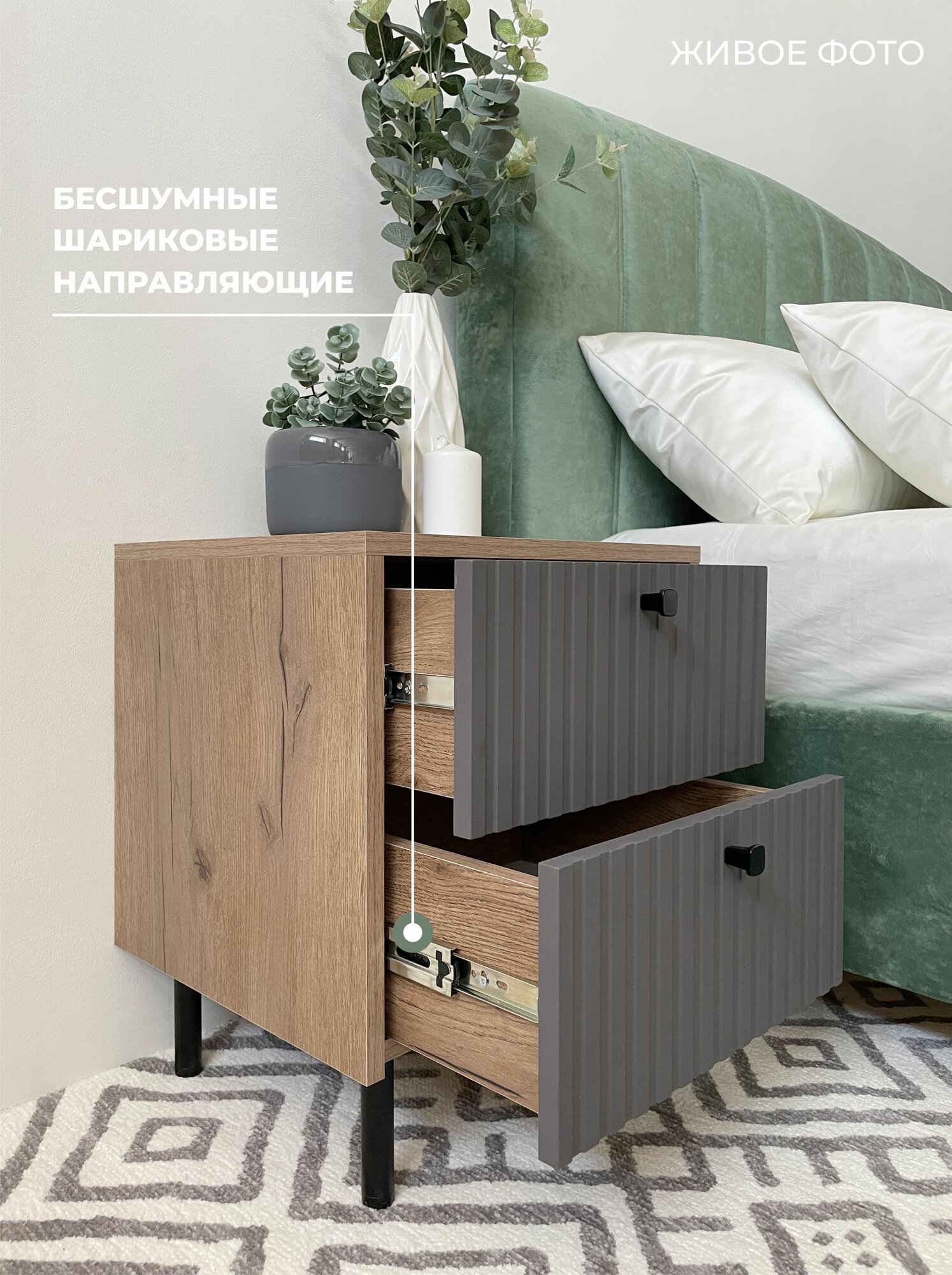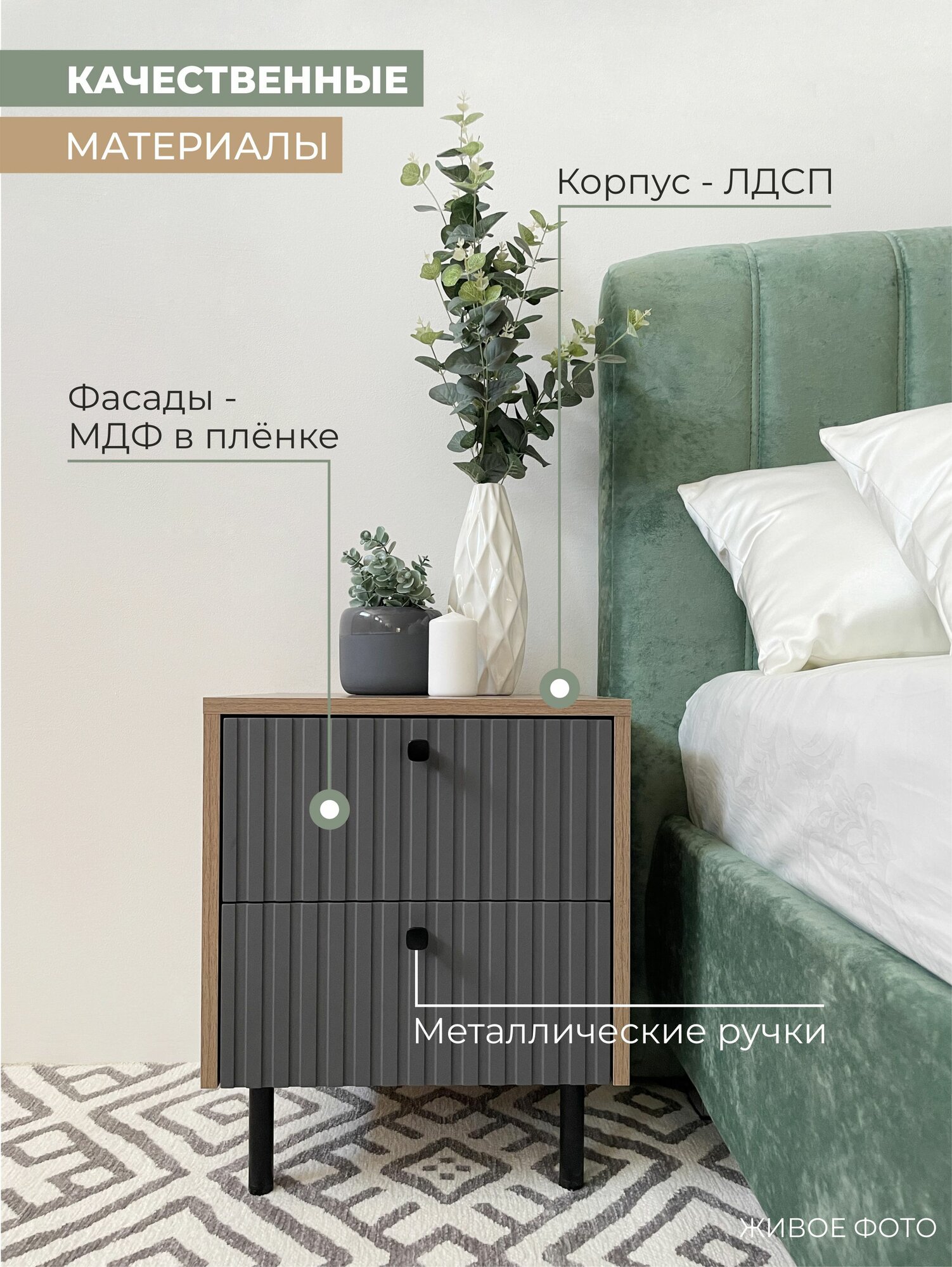 Тумба прикроватная с двумя ящиками, на ножках, графит информация: