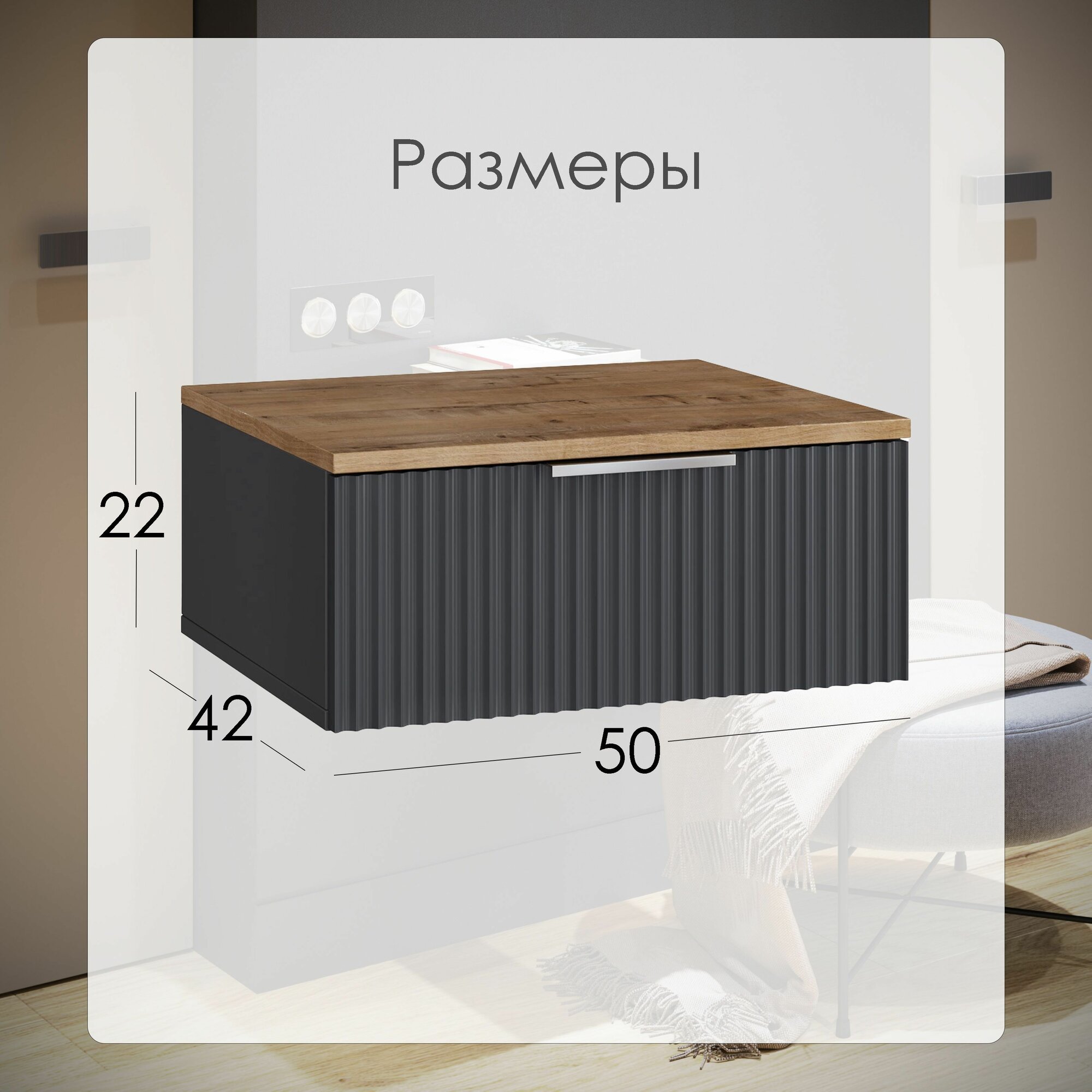 Тумба прикроватная подвесная консоль Ингрия 1 графит, 50х22х42 см информация:
