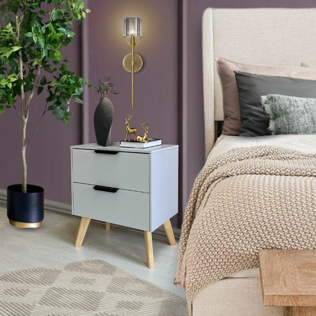 Тумба прикроватная на ножках с ящиками цвет комбинированный светлое дерево и светло серый, 49 см 5 950 ₽