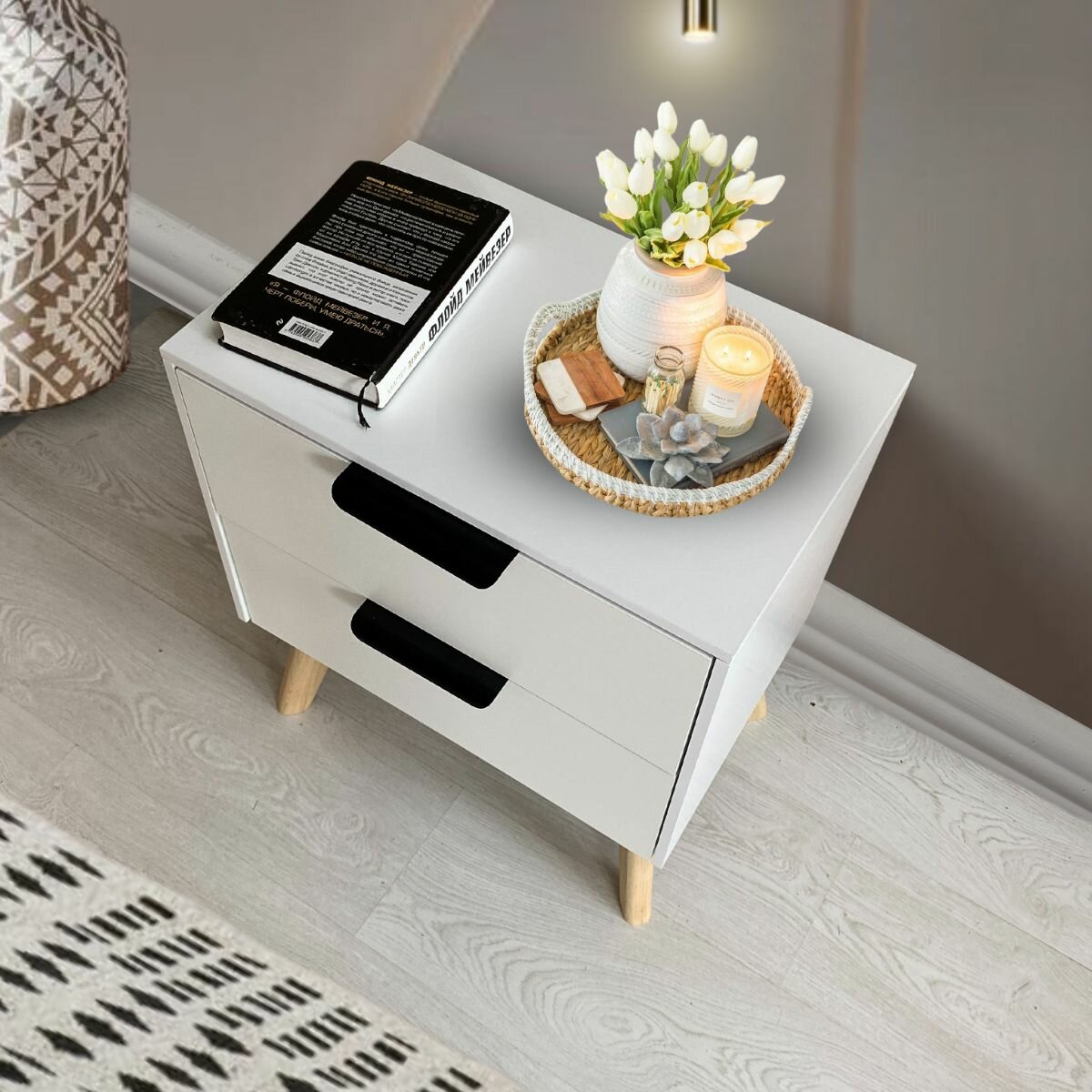 Тумба прикроватная на ножках цвет комбинированный светлое дерево и белый, 34 см 5 500 ₽