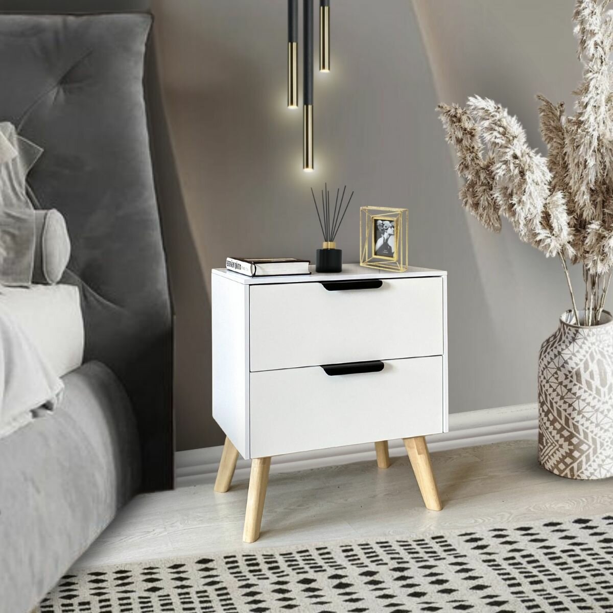 10 цен на Тумба прикроватная высокая с ящиками белая, 49 см