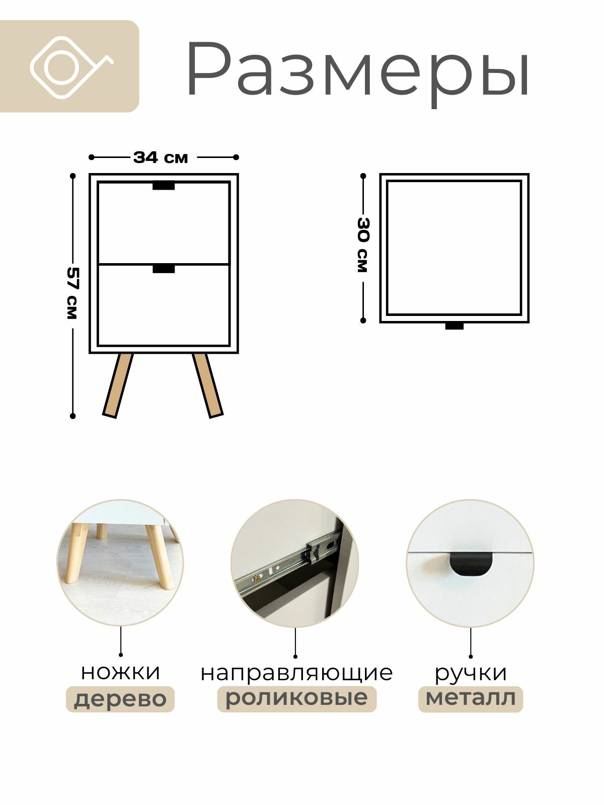 Тумба прикроватная на ножках цвет комбинированный белый и светлое дерево, 34 см 5 950 ₽