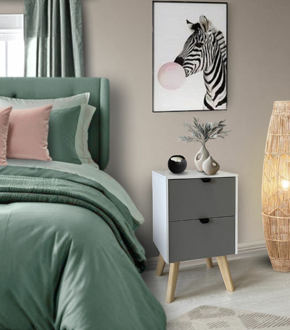 Прикроватная тумба напольная цвет комбинированный белый и графит, 34 см информация: