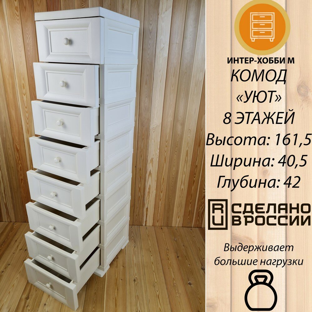 10 цен на Комод высокий 161,5 см, 8 этажей, пластиковый, "УЮТ", усиленный, Цвет: Бежевый (Слоновая кость). Арт: К-118-Б.