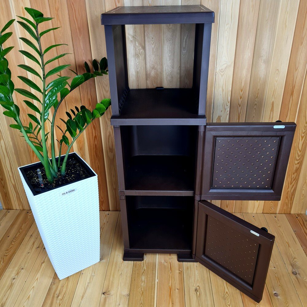 10 цен на Тумба "УЮТ" пластиковая, усиленная, 40,5х42х122,5 h, 3 этажа, 2 правых плетёных дверцы. Цвет: Коричневый. Арт: Э-178-Д