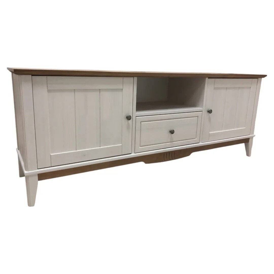 10 цен на Тумба ТВ с полкой -1600 Пенни деревянная белый воск-антик 24