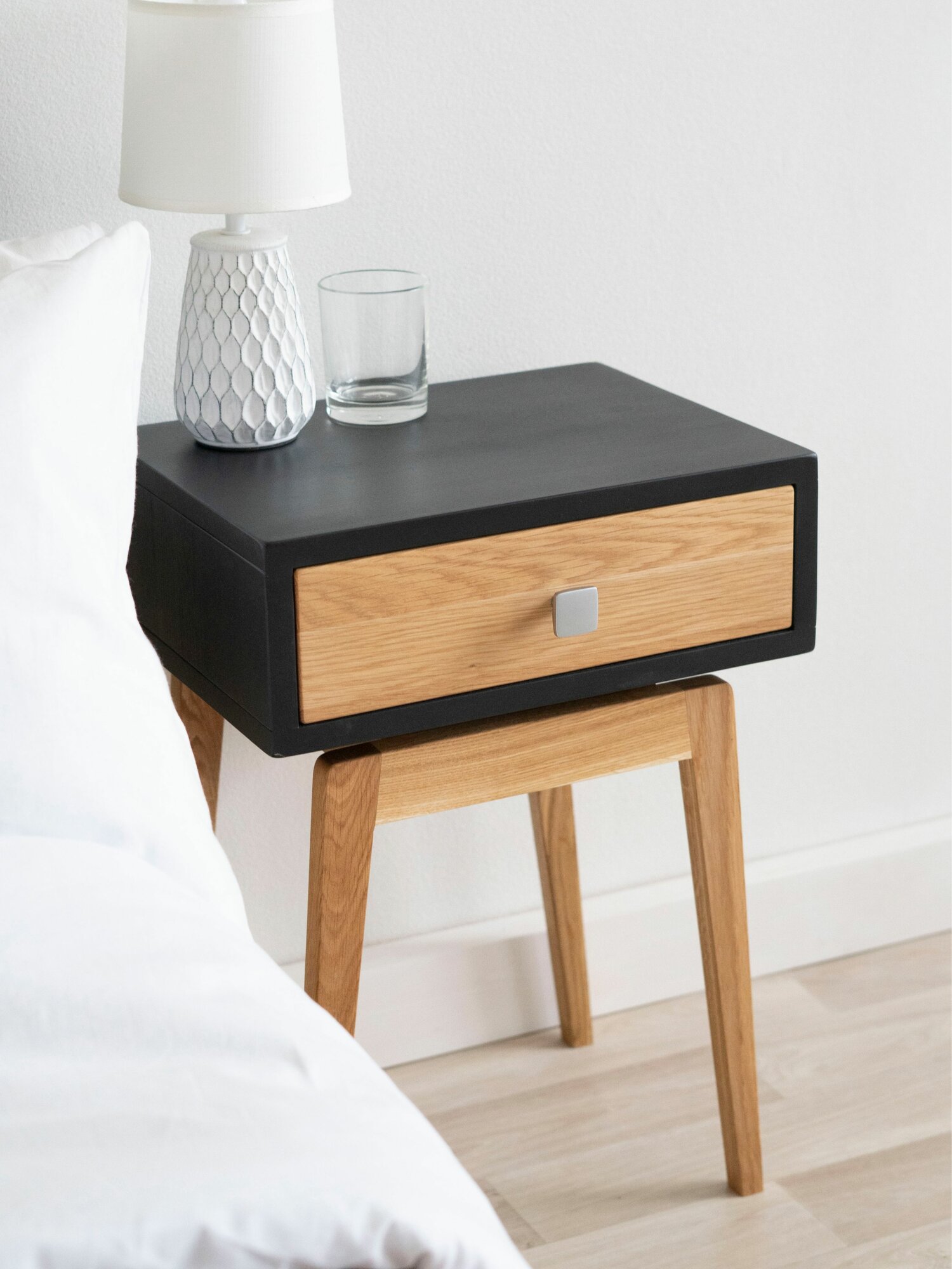 10 цен на Тумба прикроватная Zolo из натурального дерева - сосна и дуб. Размер 30х39х60 см. Цвет: черный/натуральный. Ручка: сатин