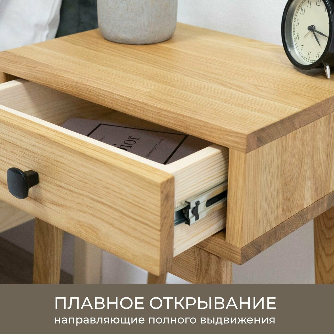 10 цен на Тумба прикроватная Zolo из массива дуба. Высота 55 см. Парящий корпус 14х30х39 см. Цвет: натуральный. Ручка: кнопка.