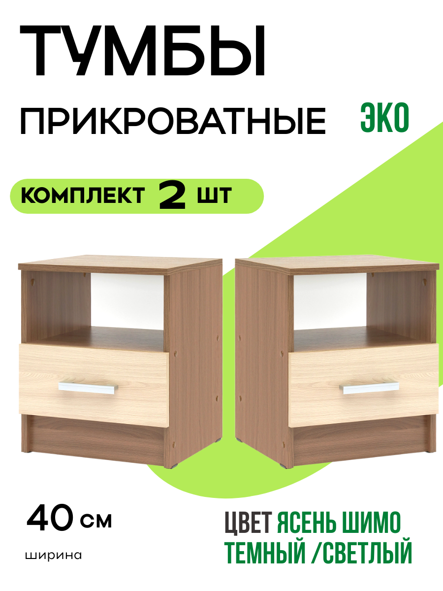 10 цен на Комплект из двух прикроватных тумбочек "Эко", цвет ясень шимо темный/светлый, ширина каждой — 40 см