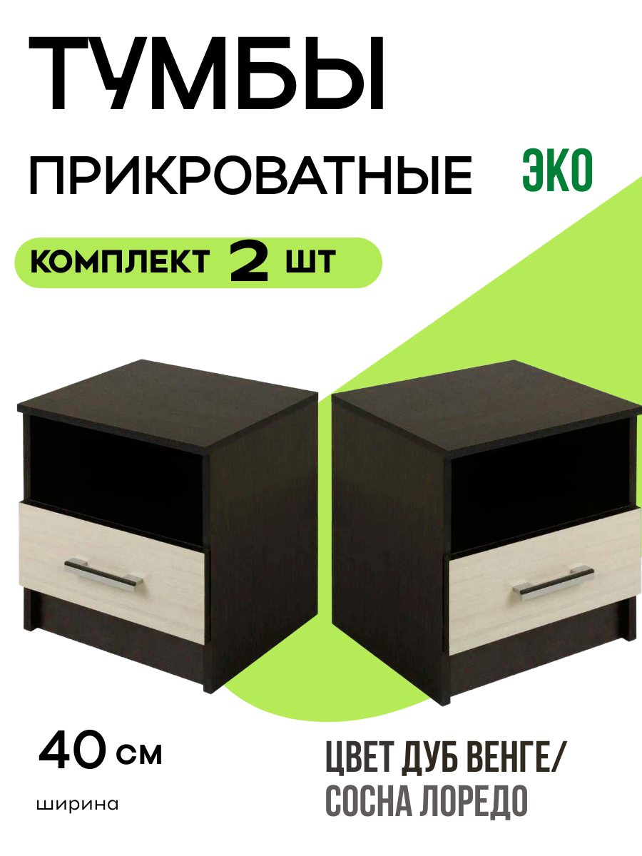 Отзывы на Комплект из двух прикроватных тумбочек "Эко", цвет дуб венге/лоредо, ширина каждой — 40 см