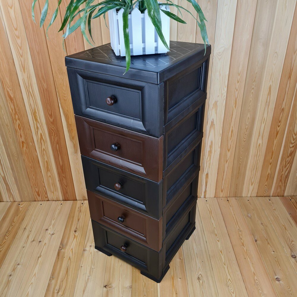 Комод пластиковый, "УЮТ", усиленный, 5 этажей, Цвет: Шоколадный с бежево-шоколадными сплошными ящиками. Арт: К-013-Ш2Б3Ш 10 360 ₽