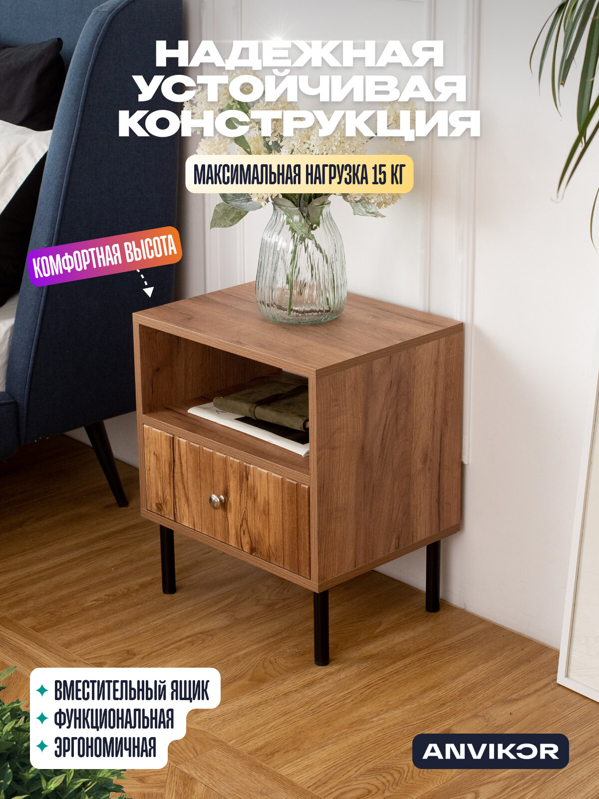 Тумба прикроватная коричневая на ножках лофт Канси информация: