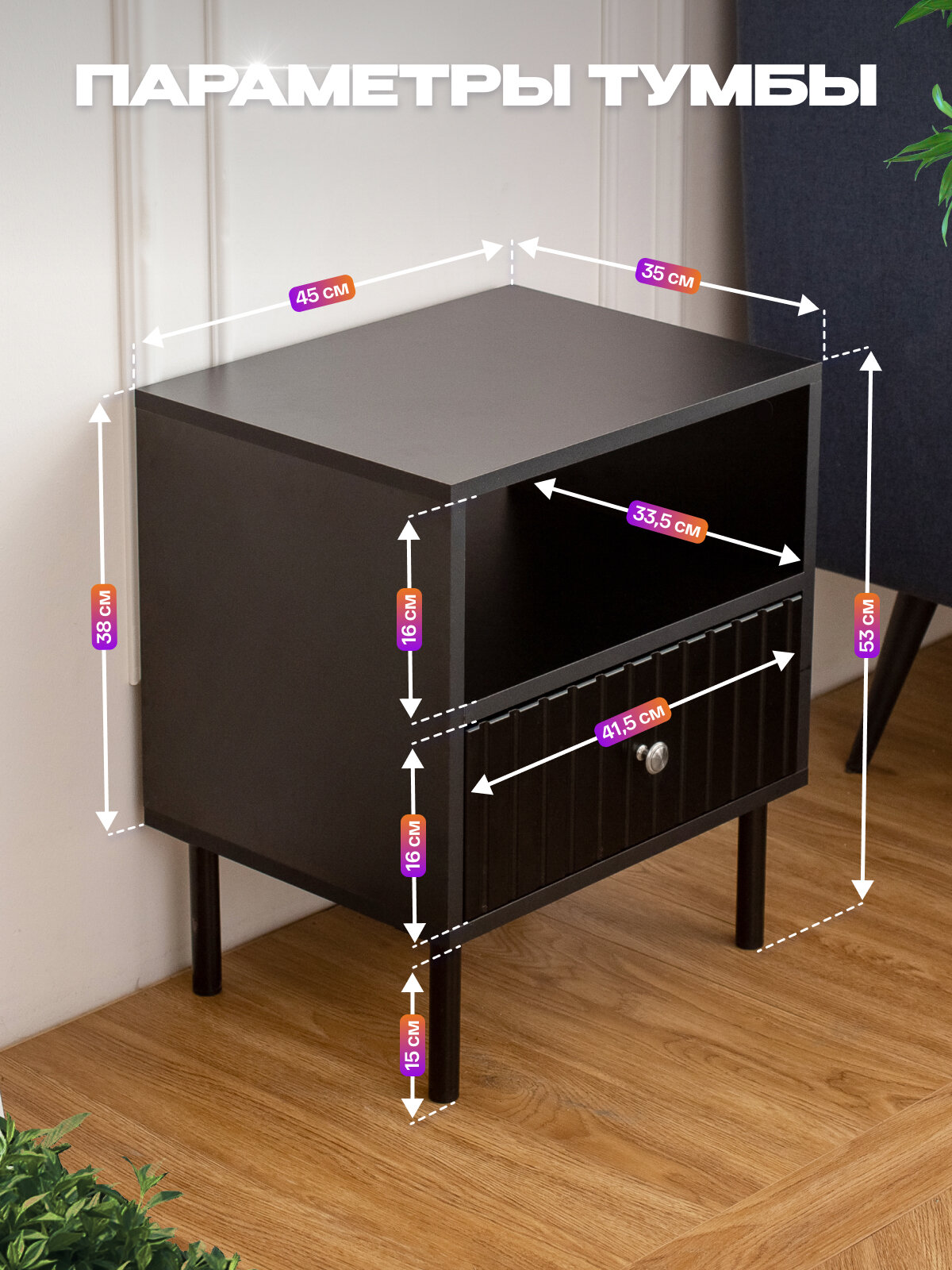 Тумба прикроватная черная на ножках лофт Канси информация: