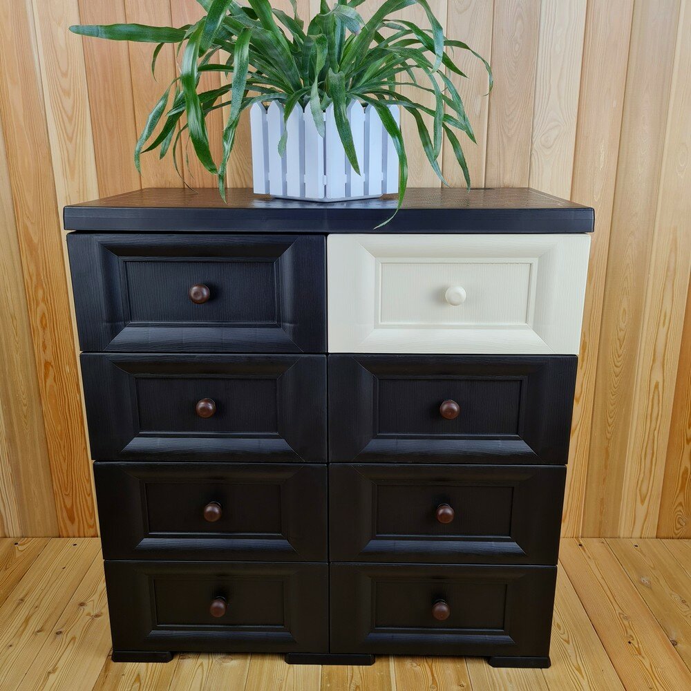 10 цен на Комод пластиковый, "УЮТ", усиленный, 4 этажа, 8 ящиков. Цвет: Шоколадный с шоколадно-бежевыми сплошными ящиками. Арт: К-018-Ш1Б7Ш-В1