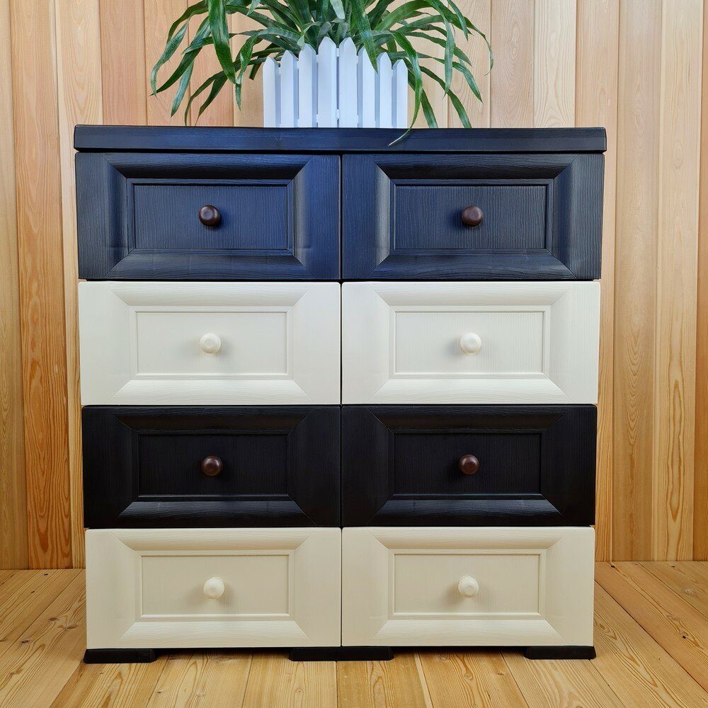 10 цен на Комод пластиковый, "УЮТ", усиленный, 4 этажа, 8 ящиков. Цвет: Шоколадный с шоколадно-бежевыми сплошными ящиками. Арт: К-018-Ш4Б4Ш-В5