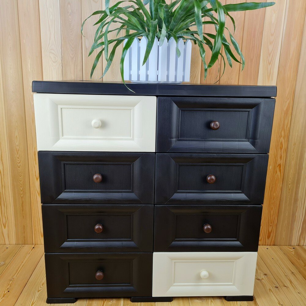 10 цен на Комод пластиковый, "УЮТ", усиленный, 4 этажа, 8 ящиков. Цвет: Шоколадный с шоколадно-бежевыми сплошными ящиками. Арт: К-018-Ш2Б6Ш-В2