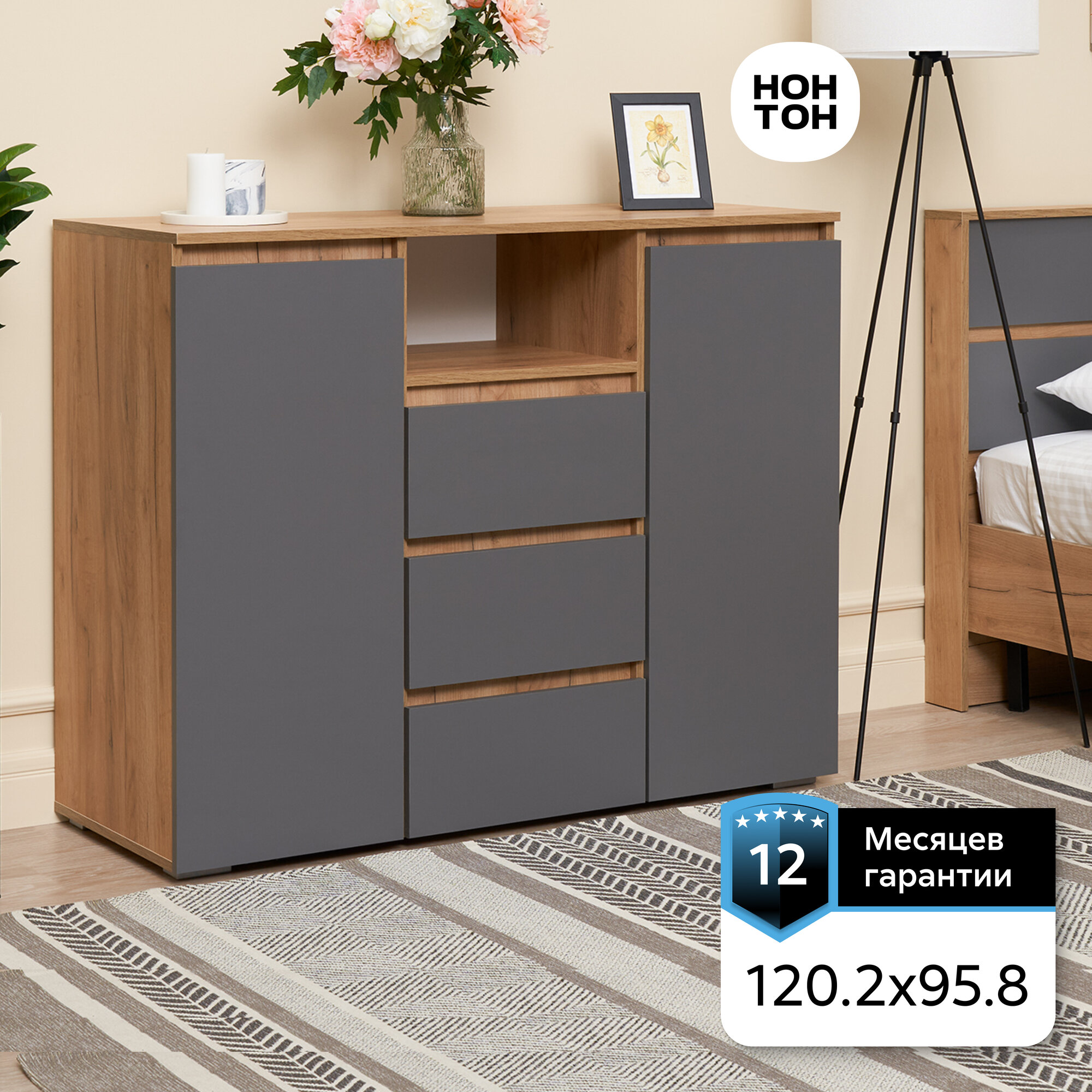 Отзывы на Комод для одежды Нонтон Ирма, дуб крафт золото / серый графит, 120.2x46x95.8 см