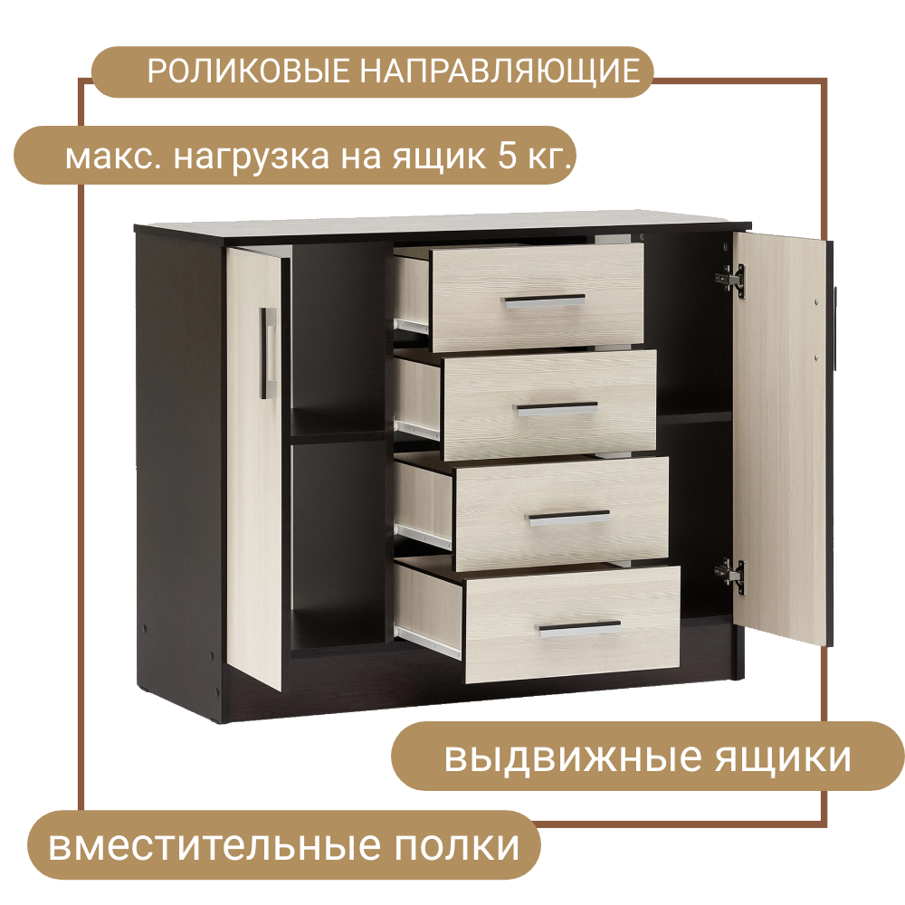 Комод Николь с 4мя ящиками 87,7х44x77 см Венге/Лиственница светлая 6 300 ₽