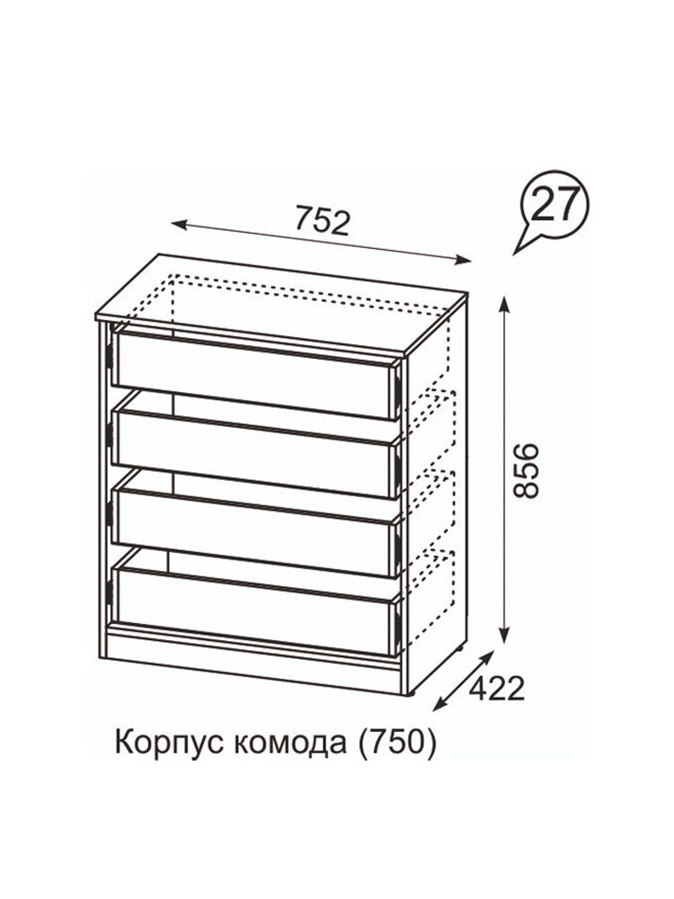 ARNIKA Комод с ящиками для одежды белый Квадро 750, 75.2х42.2х85.6 см информация:
