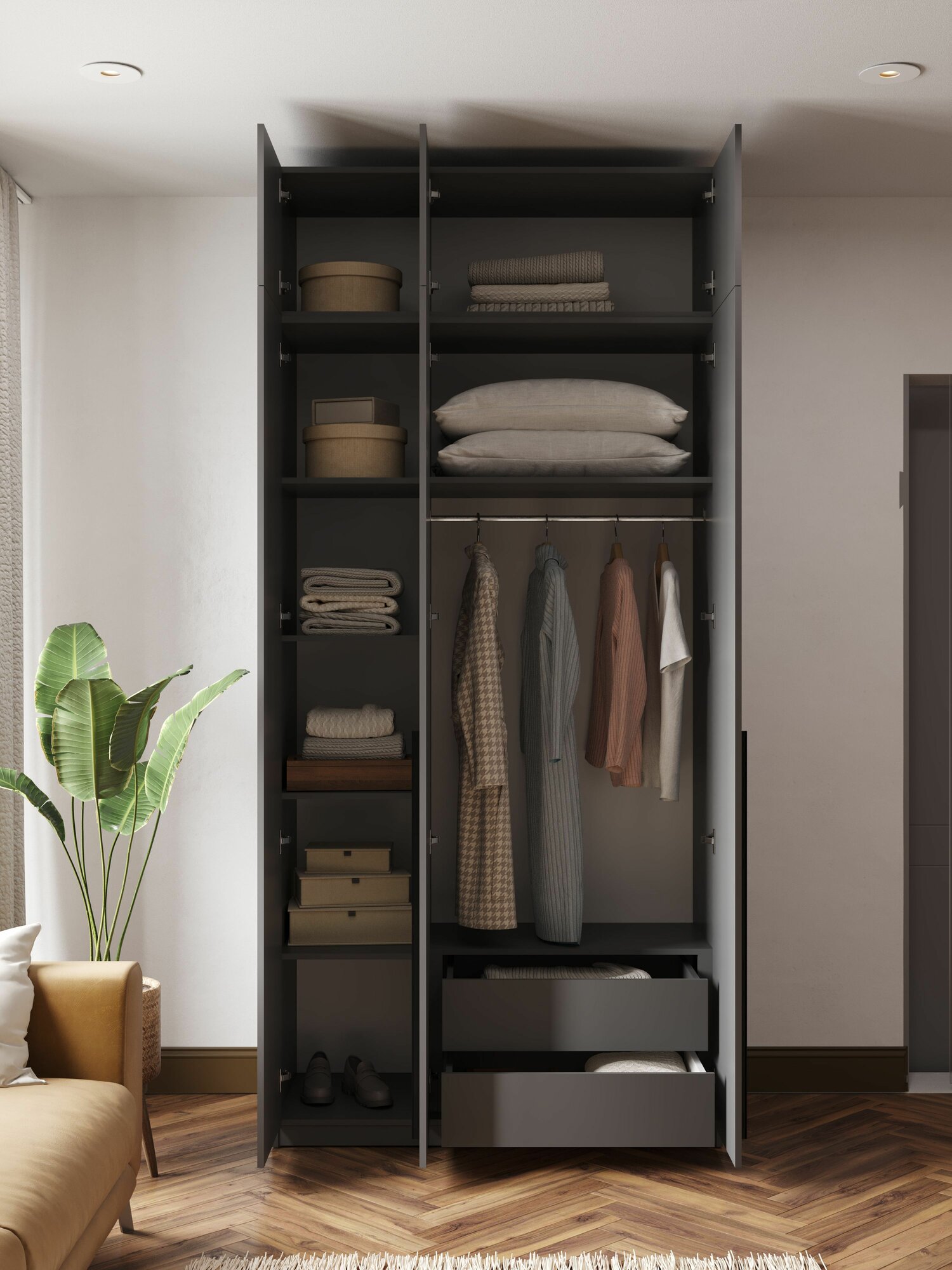 Шкаф для одежды распашной с ящиками 5-ти дверный, Графит, 2200х2000х520 мм 45 909 ₽
