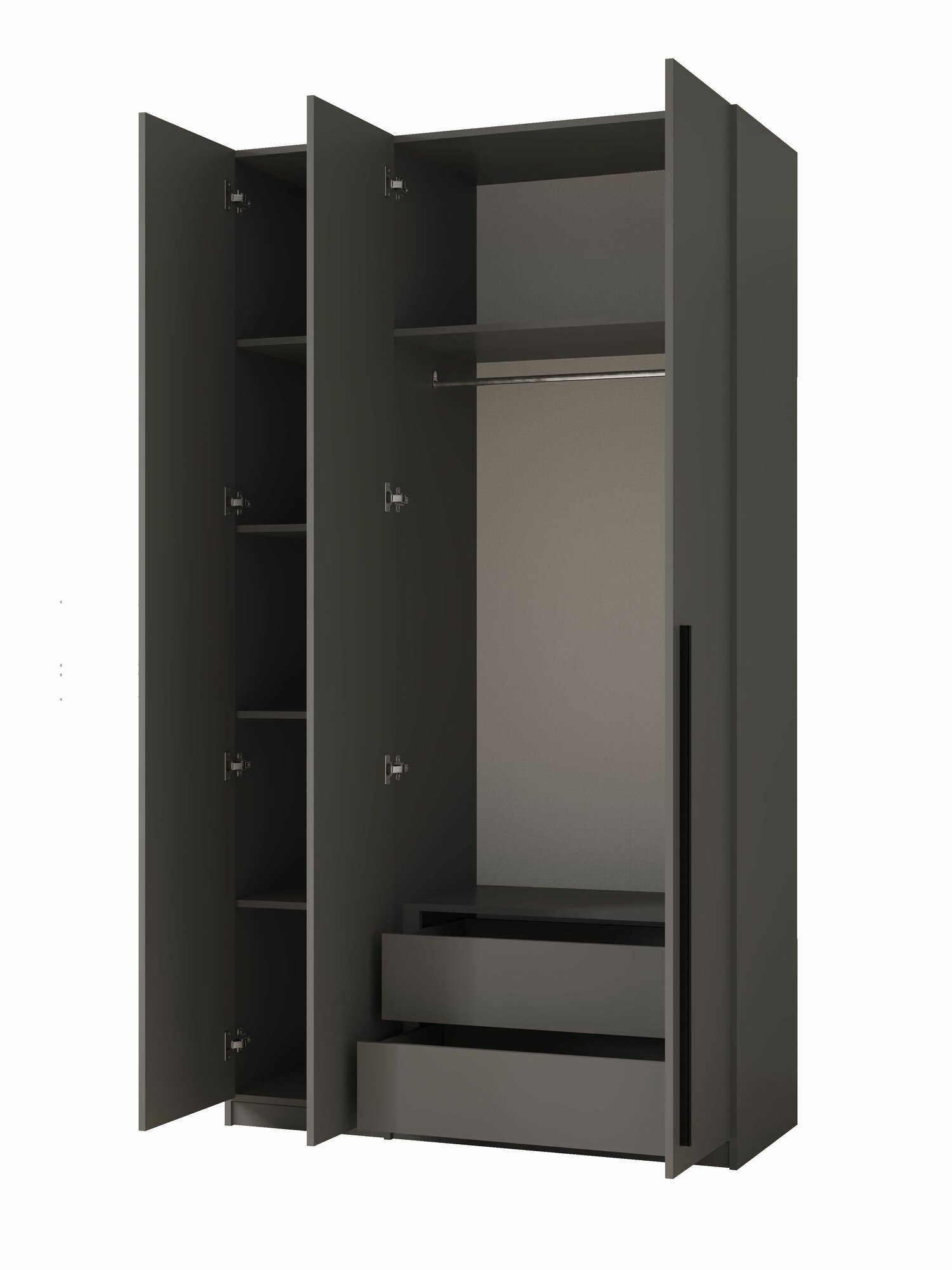 Шкаф для одежды 3-х дверный, с полками, шкаф с ящиками для детской, скрытое хранение, Графит, 2200х1200х520 мм информация: