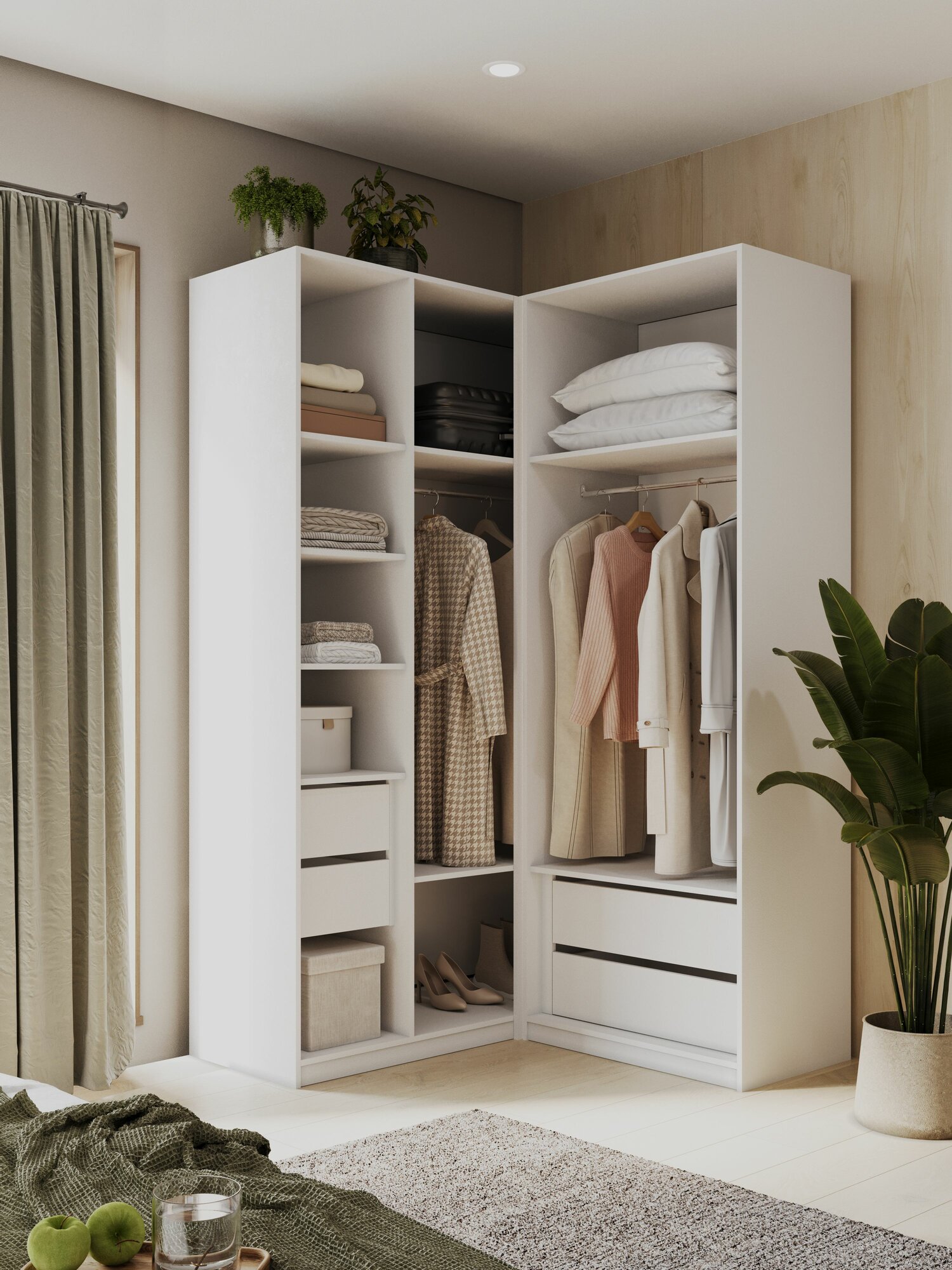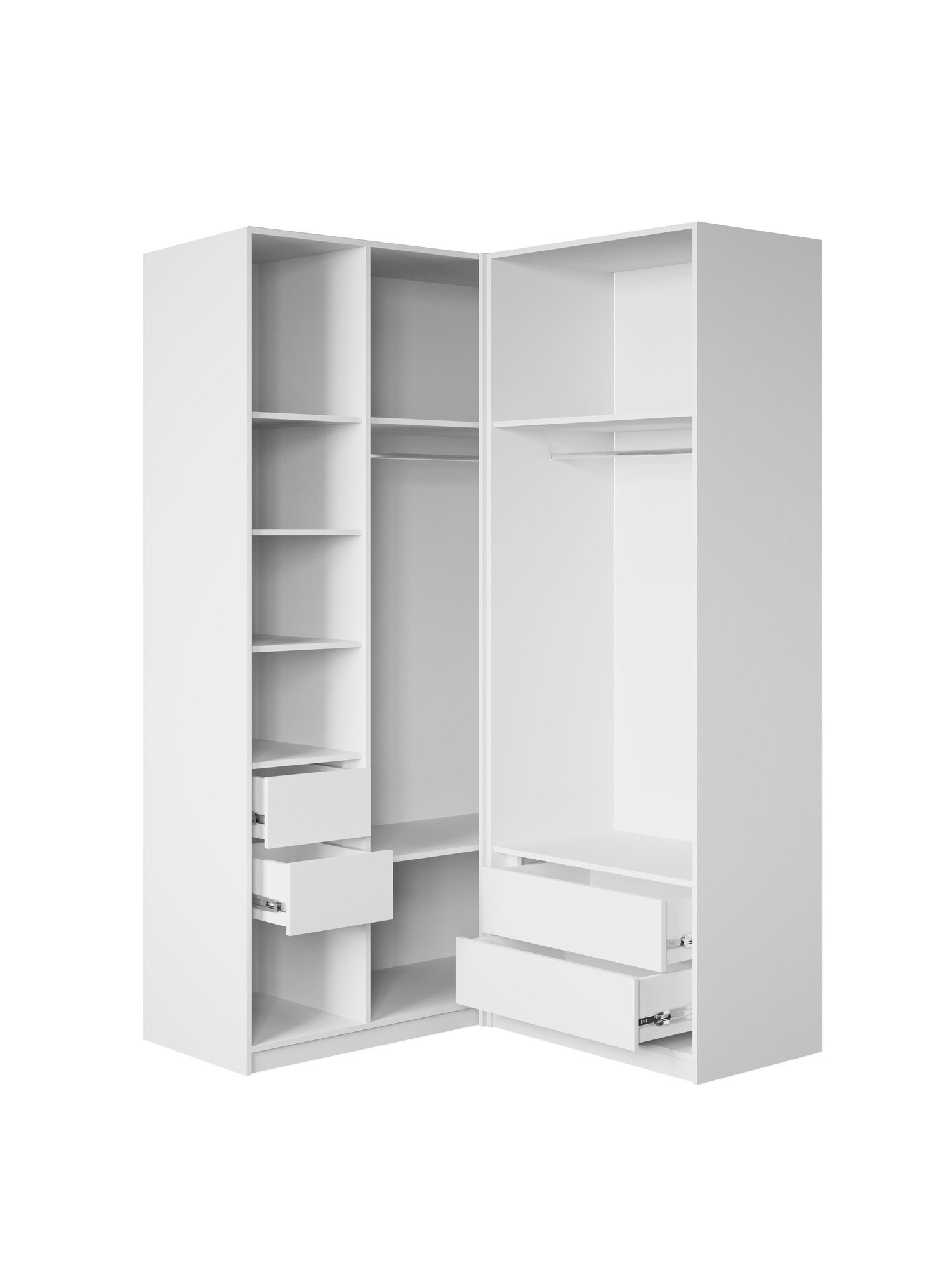 10 цен на Угловой шкаф для одежды распашной с ящиками, Шкаф в прихожую Белый, 2200х1300х520мм