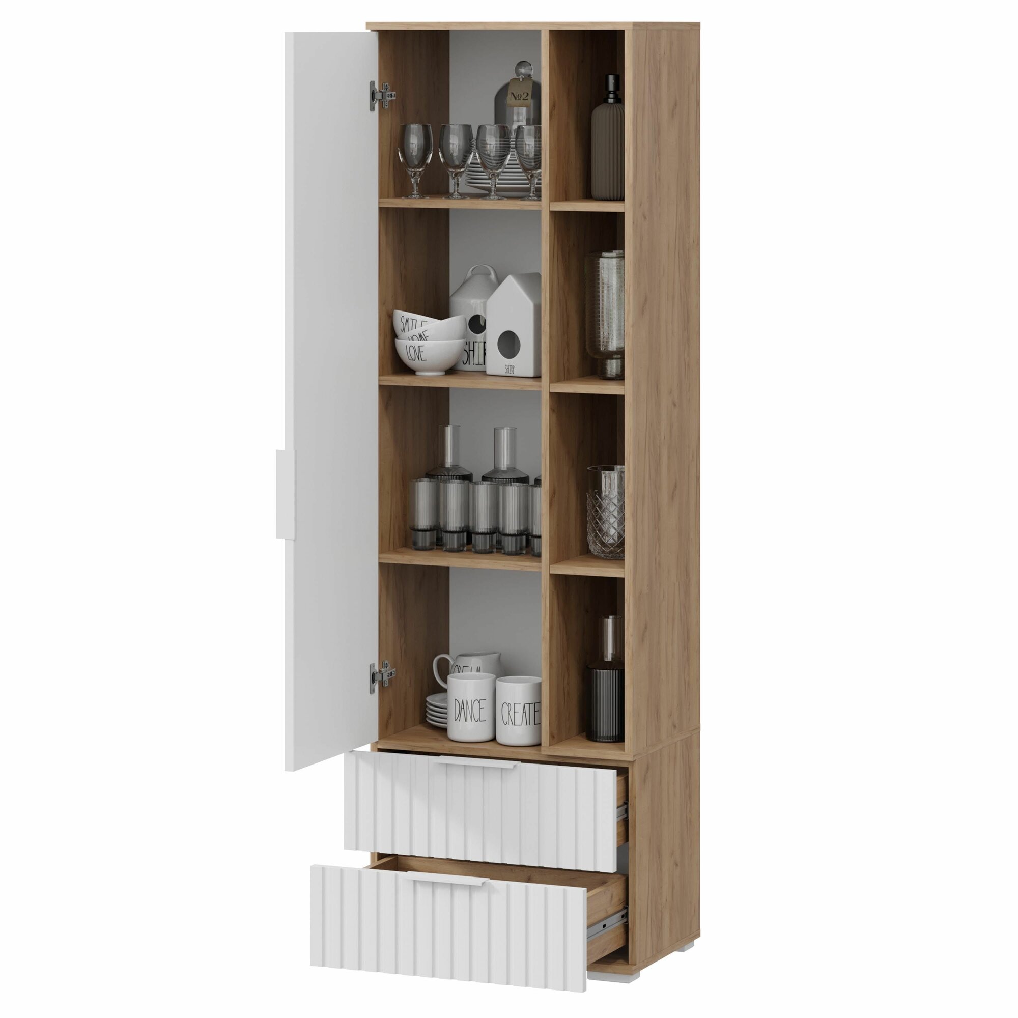 10 цен на Мебель Трия, шкаф для посуды Хилтон, ЛДСП, МДФ, 57,4 x 37,4 x 187 см