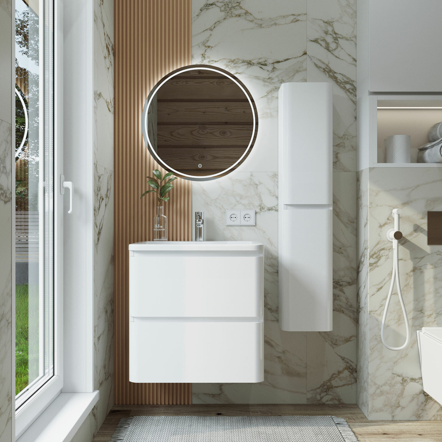 Шкаф пенал для ванной Roberto 25 250x200x1200 универсальный Белый глянец навесной информация: