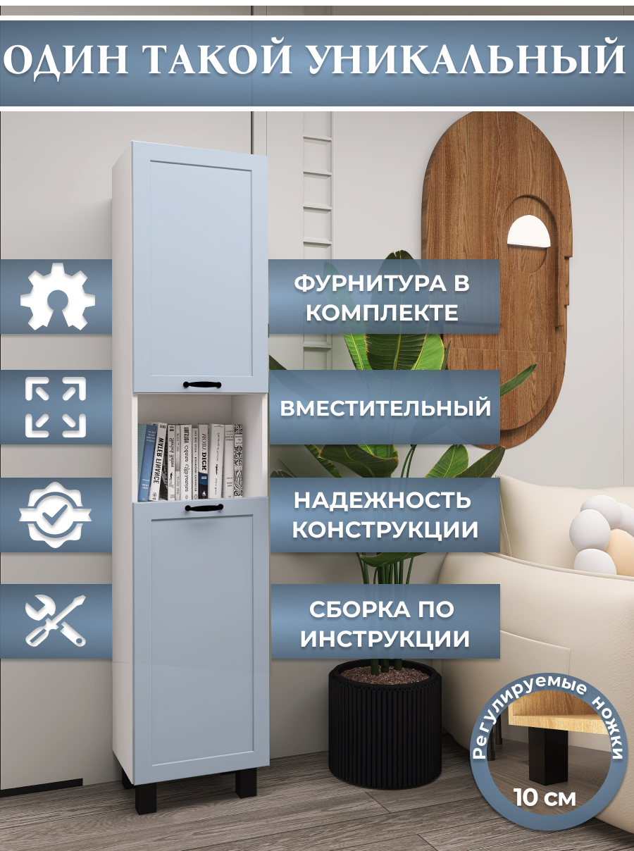 Шкаф-пенал Аквамикс, для ванной, прихожей, спальни, Прованс голубой, 180х30х30 информация: