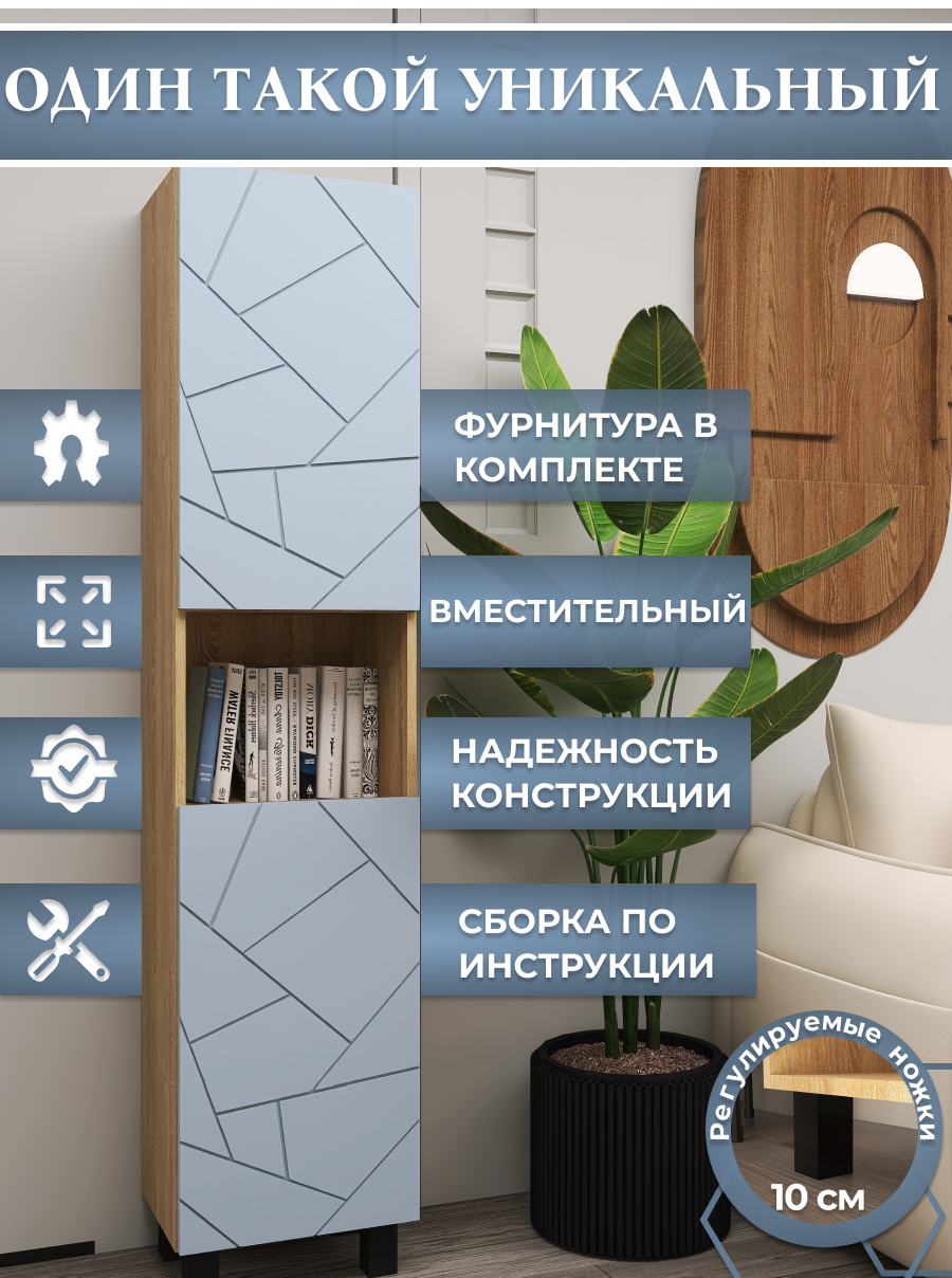 Шкаф-пенал Аквамикс, для ванной, прихожей, спальни, голубой, 180х40х30 8 100 ₽