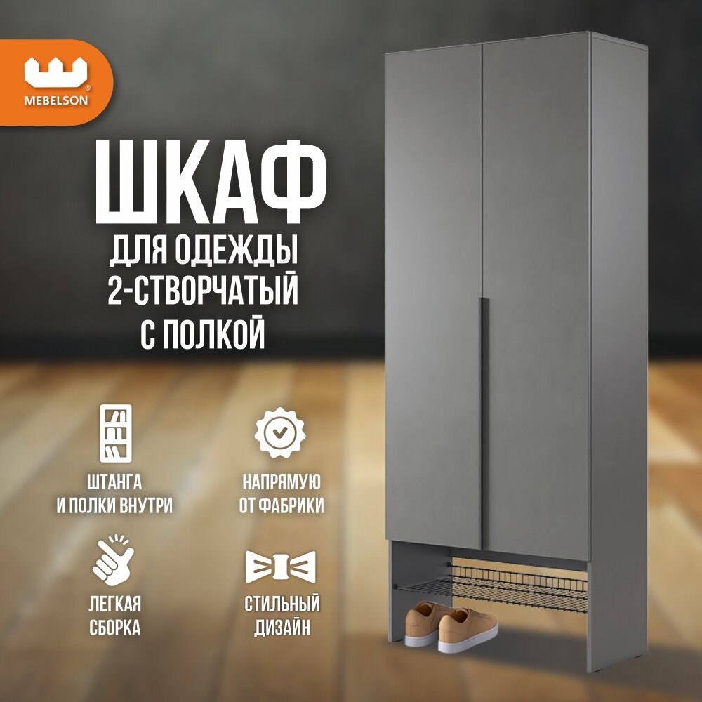 Отзывы на Шкаф для одежды распашной двухдверный "Баско" К3 с сотовой полкой для обуви, цвет Графит, 80*35*195 см, Mebelson