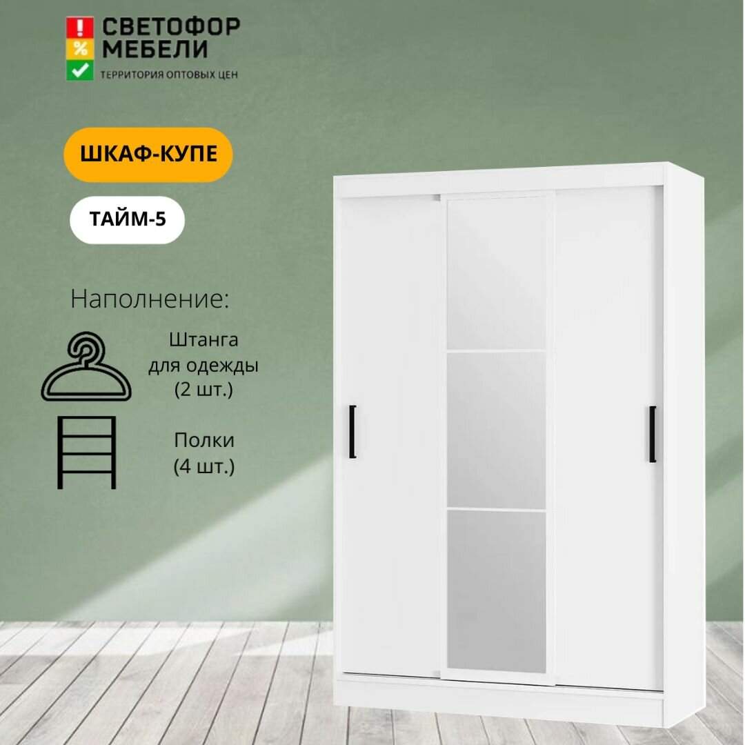 Шкаф-купе Мебельный рай Тайм-5, 131 см x 200см x 51см, с зеркалом информация: