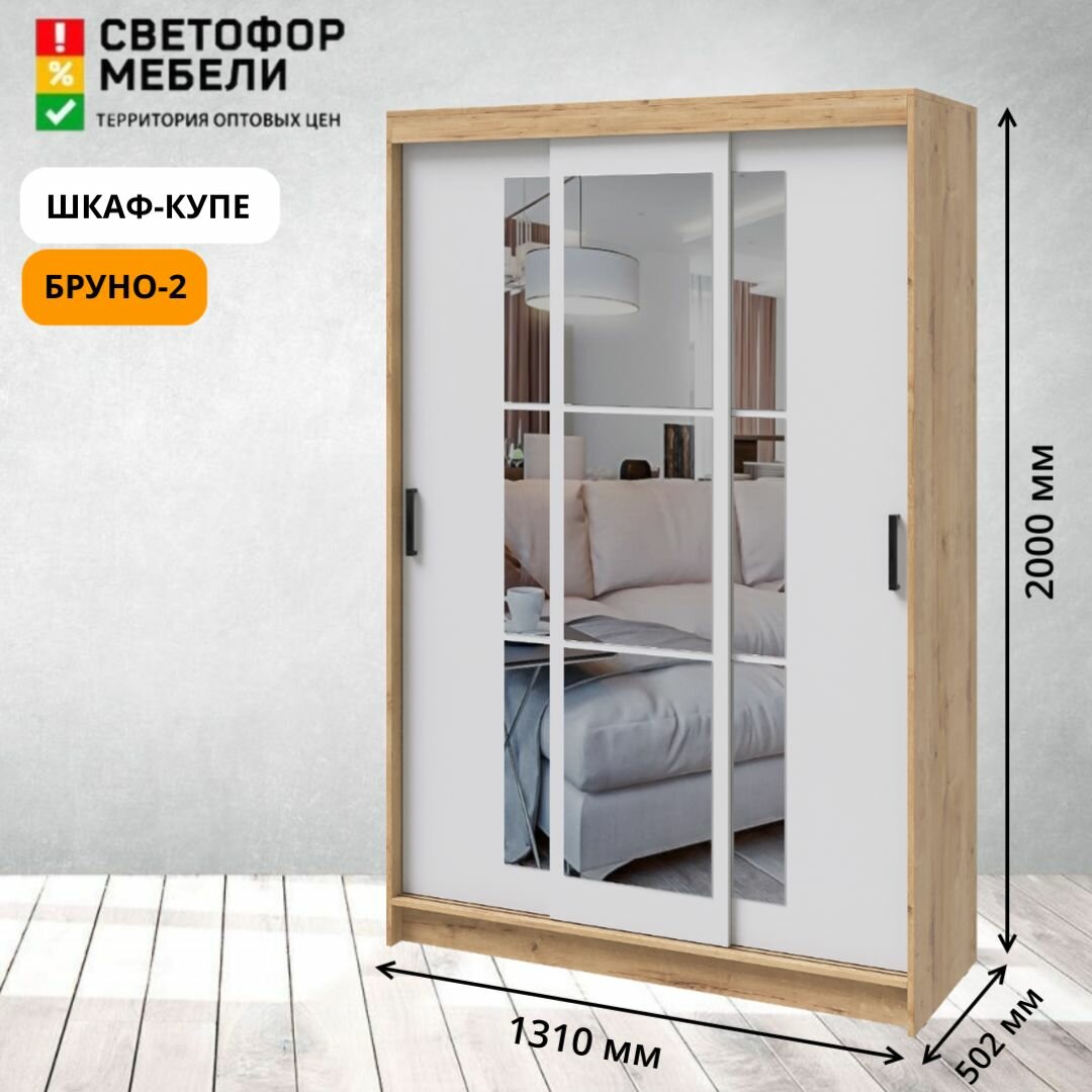 10 цен на Шкаф-купе Мебельный рай Бруно 2 1310х2000х502, Дуб вотан/Белый