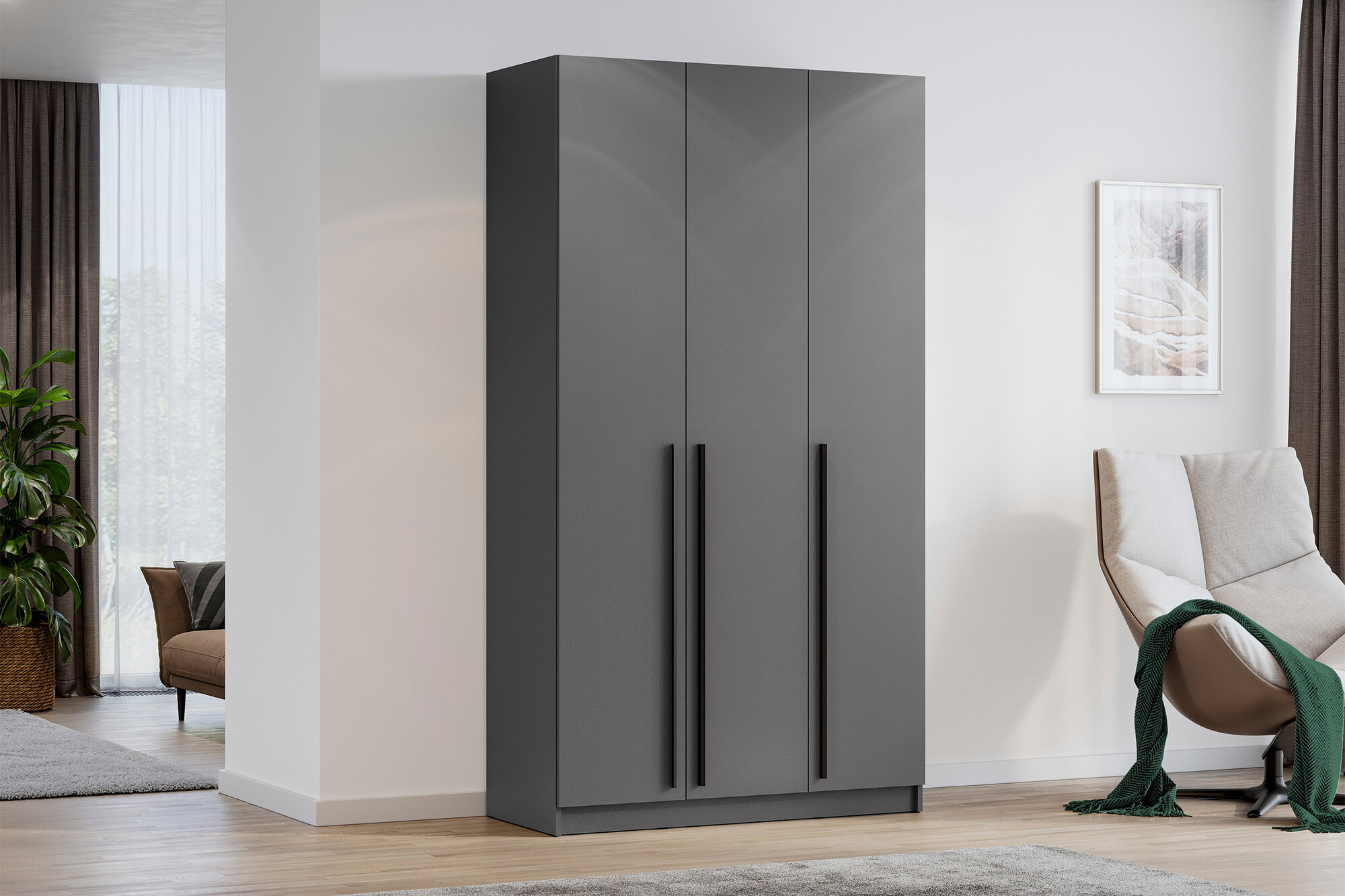10 цен на Шкаф для одежды с ящиками и полками распашной Нонтон Берген, серый графит, 120х52х220 см