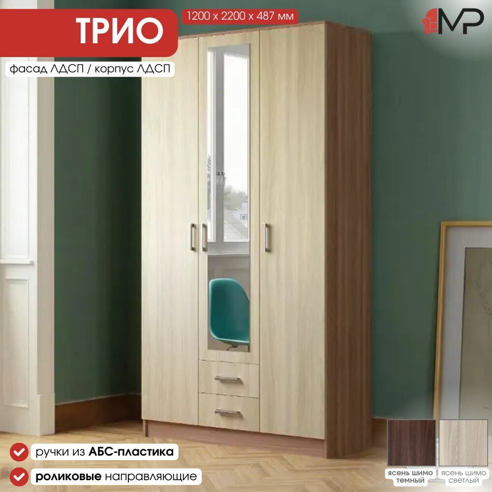 Шкаф 3-х створчатый трио ЛДСП ясень шимо темный/ясень шимо светлый (1200/487/2200 мм) для дома, дачи, офиса информация:
