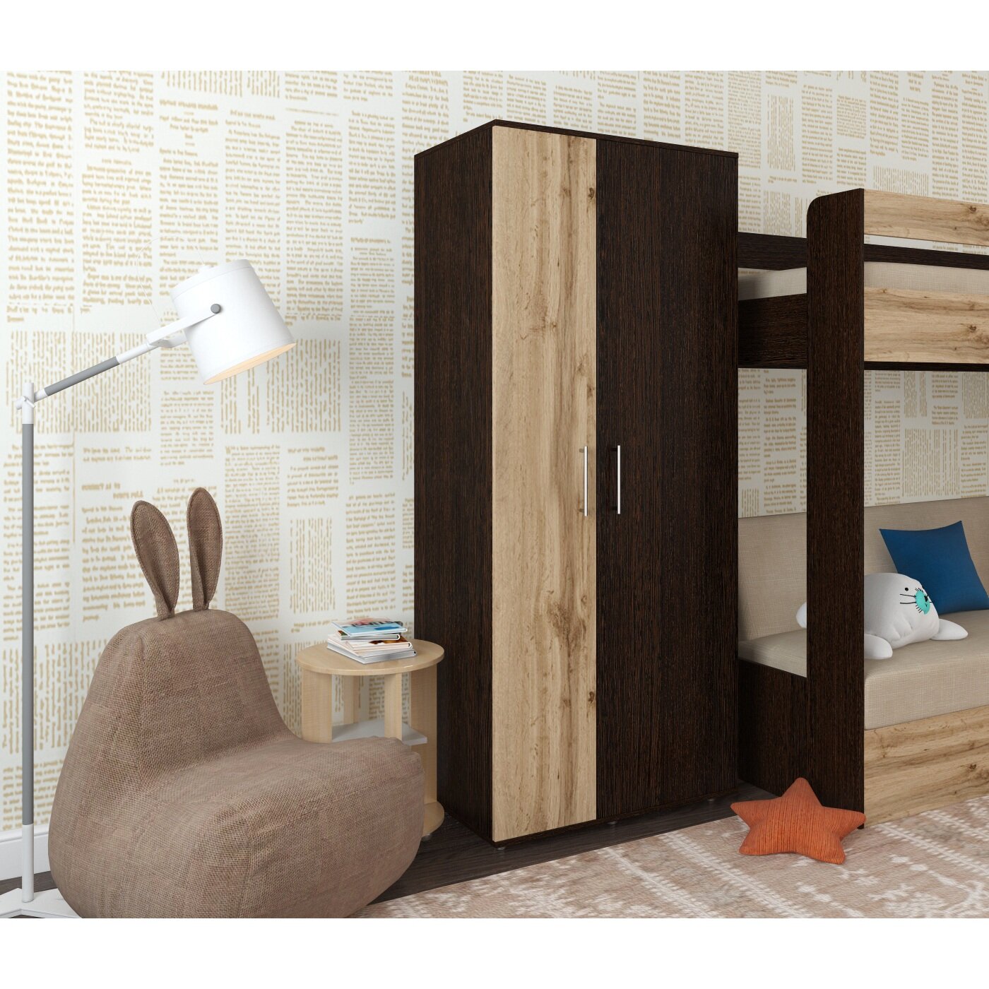 Шкаф двухстворчатый, с полками, со штангой Есэндвич Лаворо, правый, 80x50х190 см (Венге/Дуб вотан) информация:
