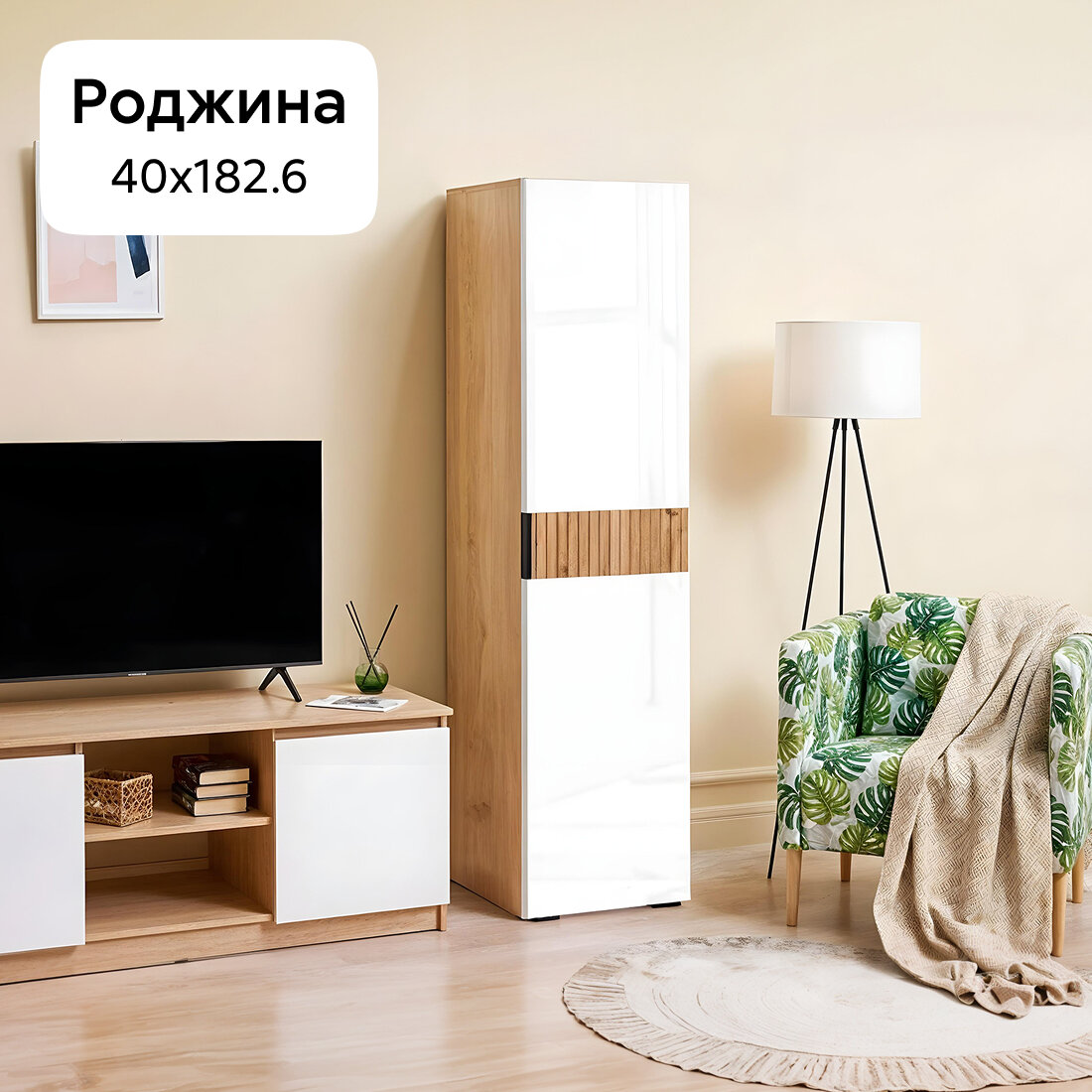Шкаф-пенал с полками Нонтон Роджина, дуб крафт / белый глянец, 40 см информация: