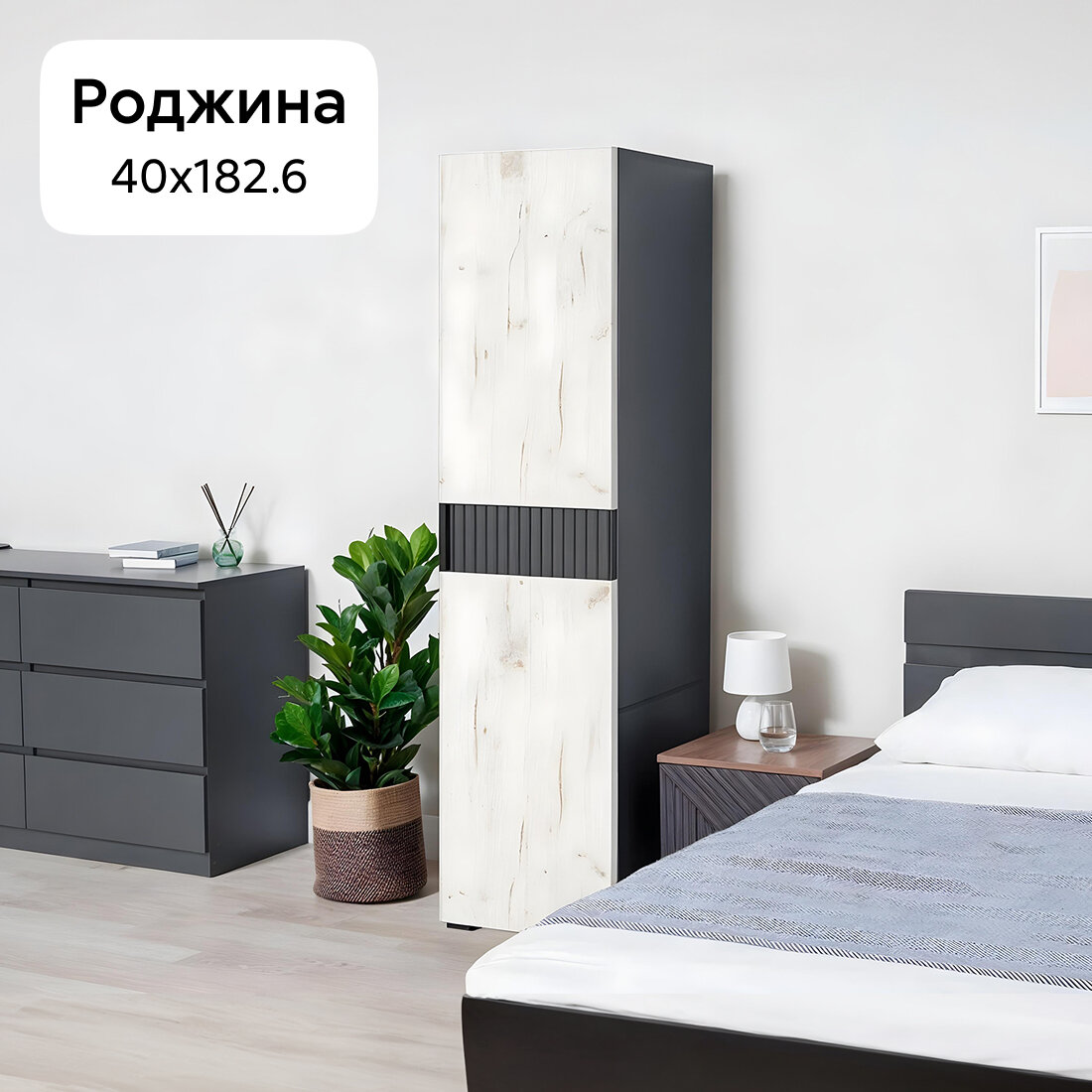 Шкаф-пенал с полками Нонтон Роджина, графит / дуб крафт белый, 40 см информация: