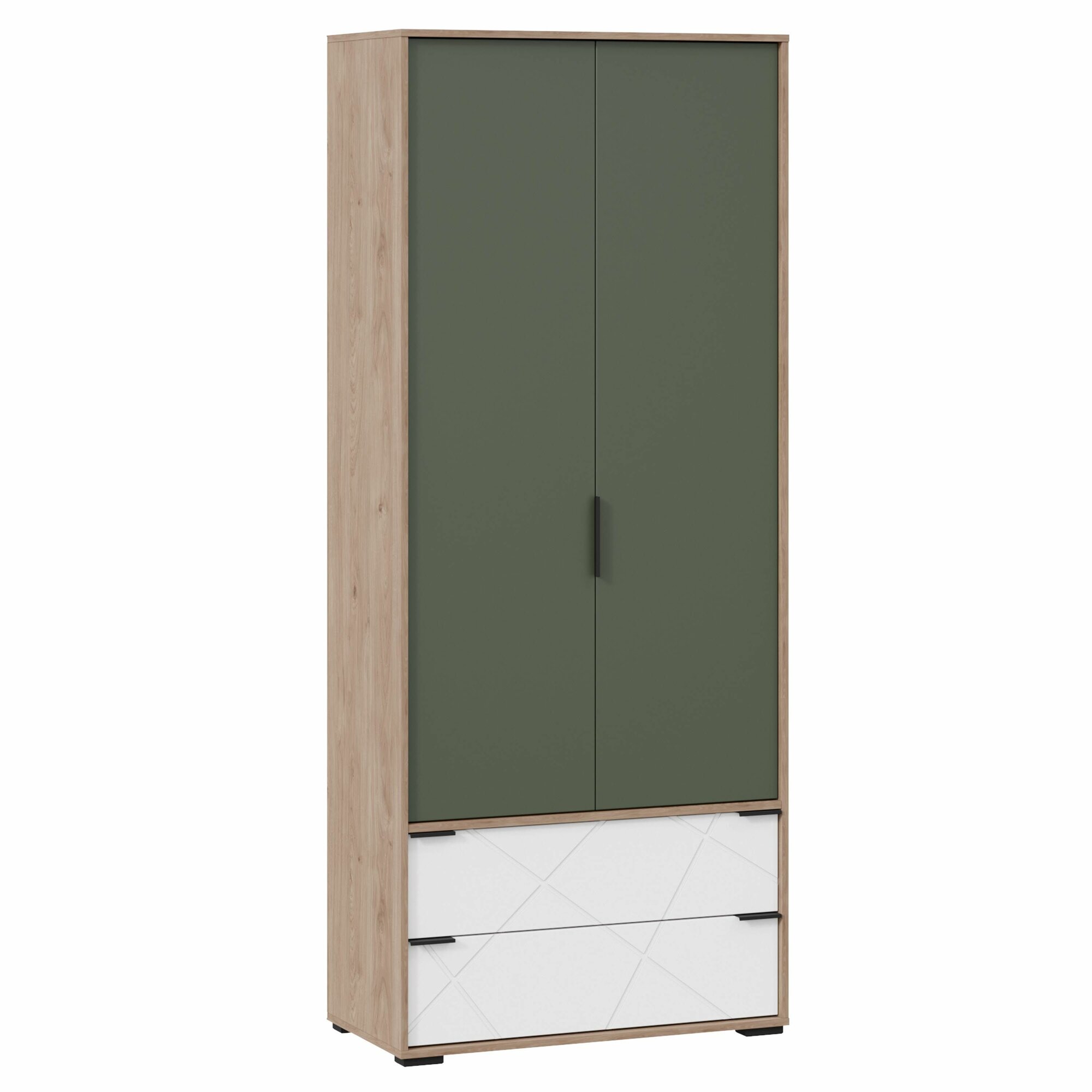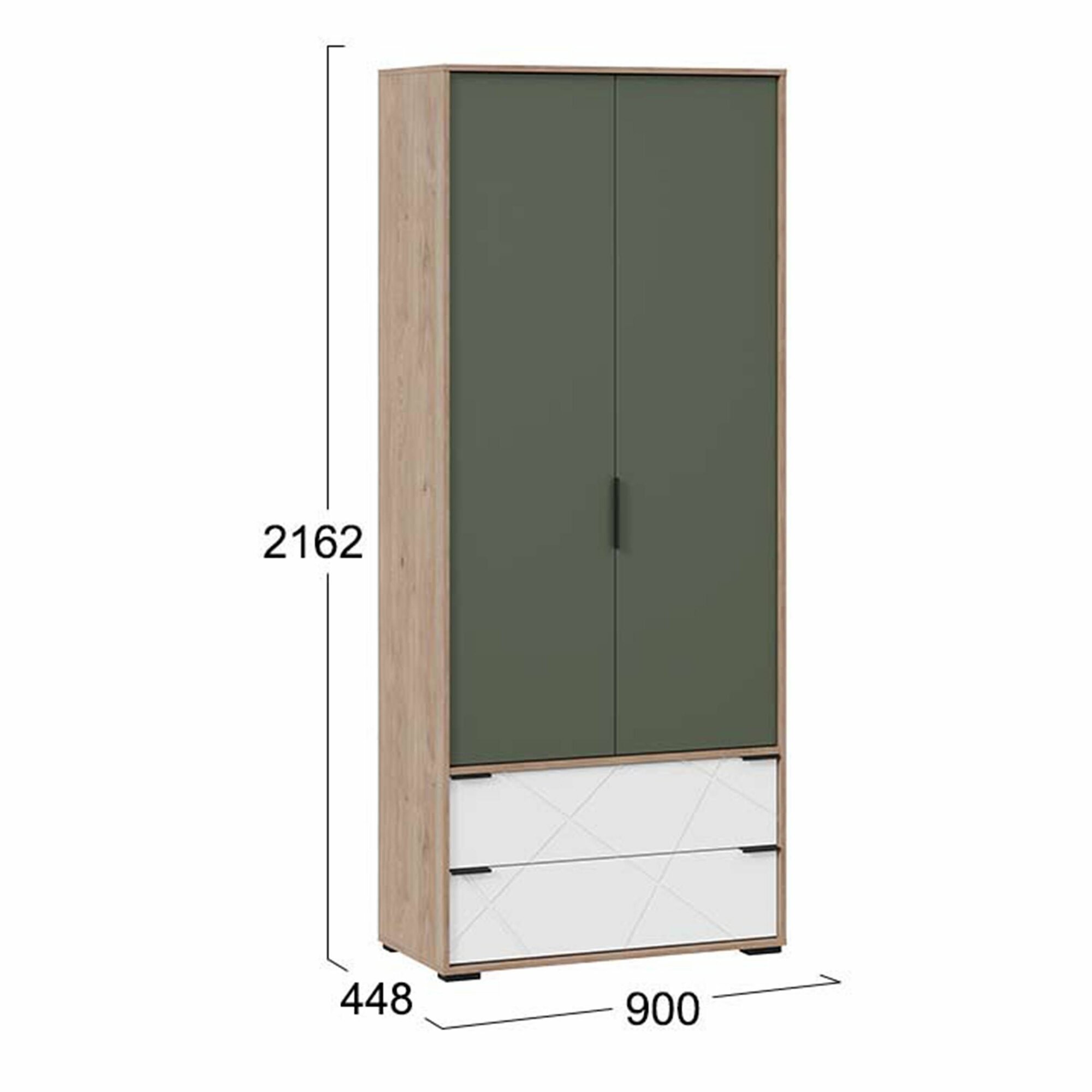 Шкаф для одежды , двухстворчатый, с ящиками "Лео" (Гикори джексон/Белый матовый/Дымчатый зеленый) информация: