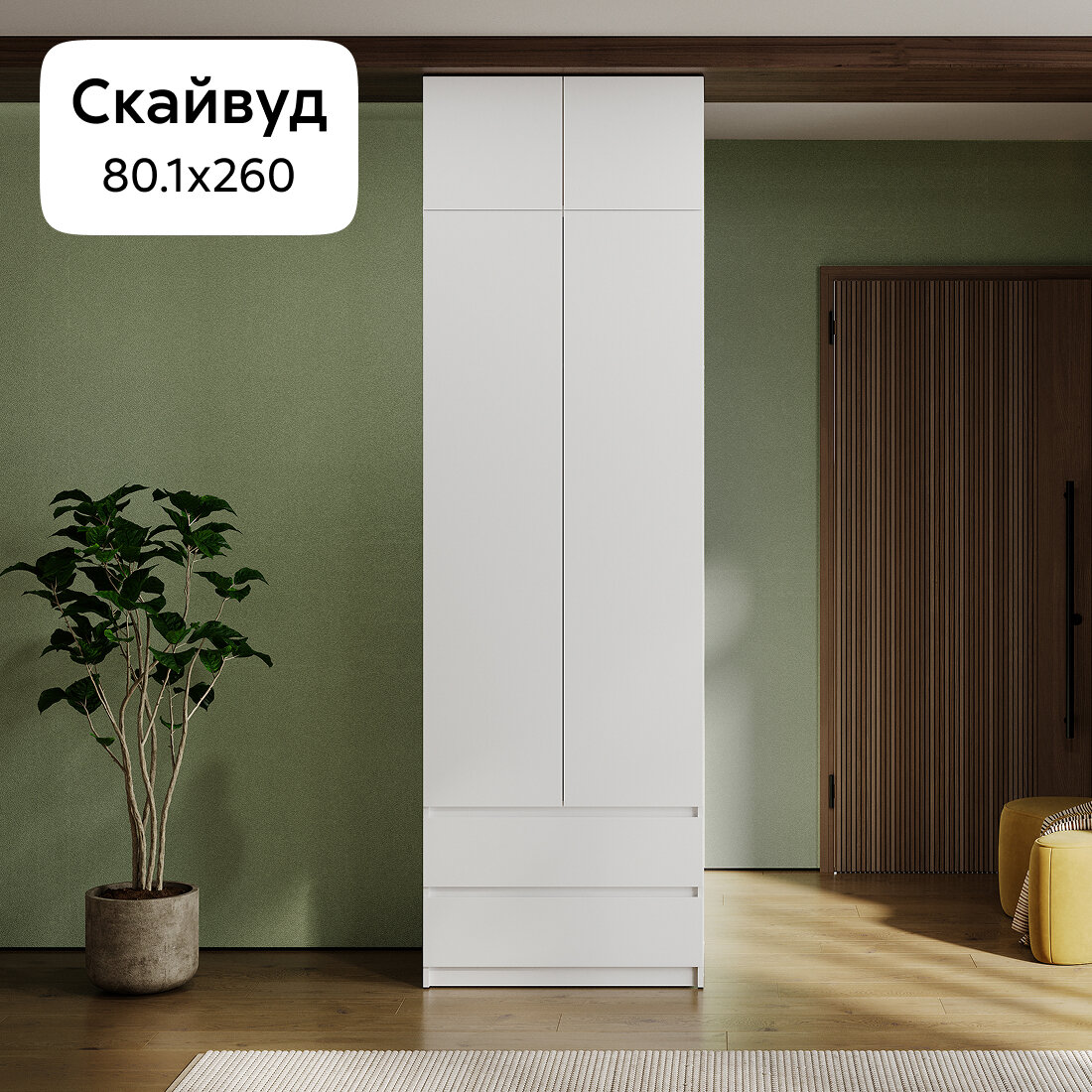 10 цен на Шкаф для одежды с ящиками и антресолью Нонтон Скайвуд, белый текстурный, 80 см