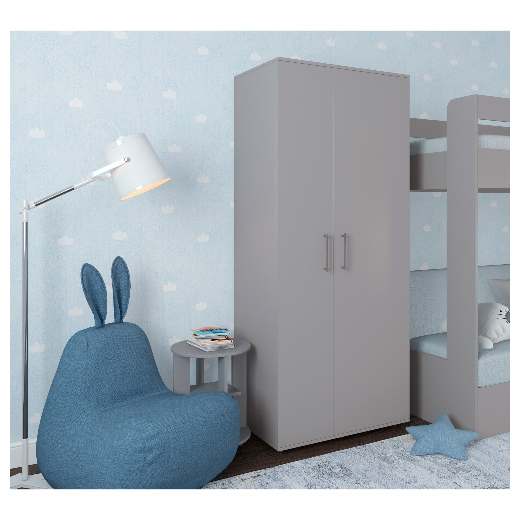 Шкаф распашной Калифорния-2 с антресолью Сумеречный Голубой для одежды двухдверный 70*210*40 Мегамебель