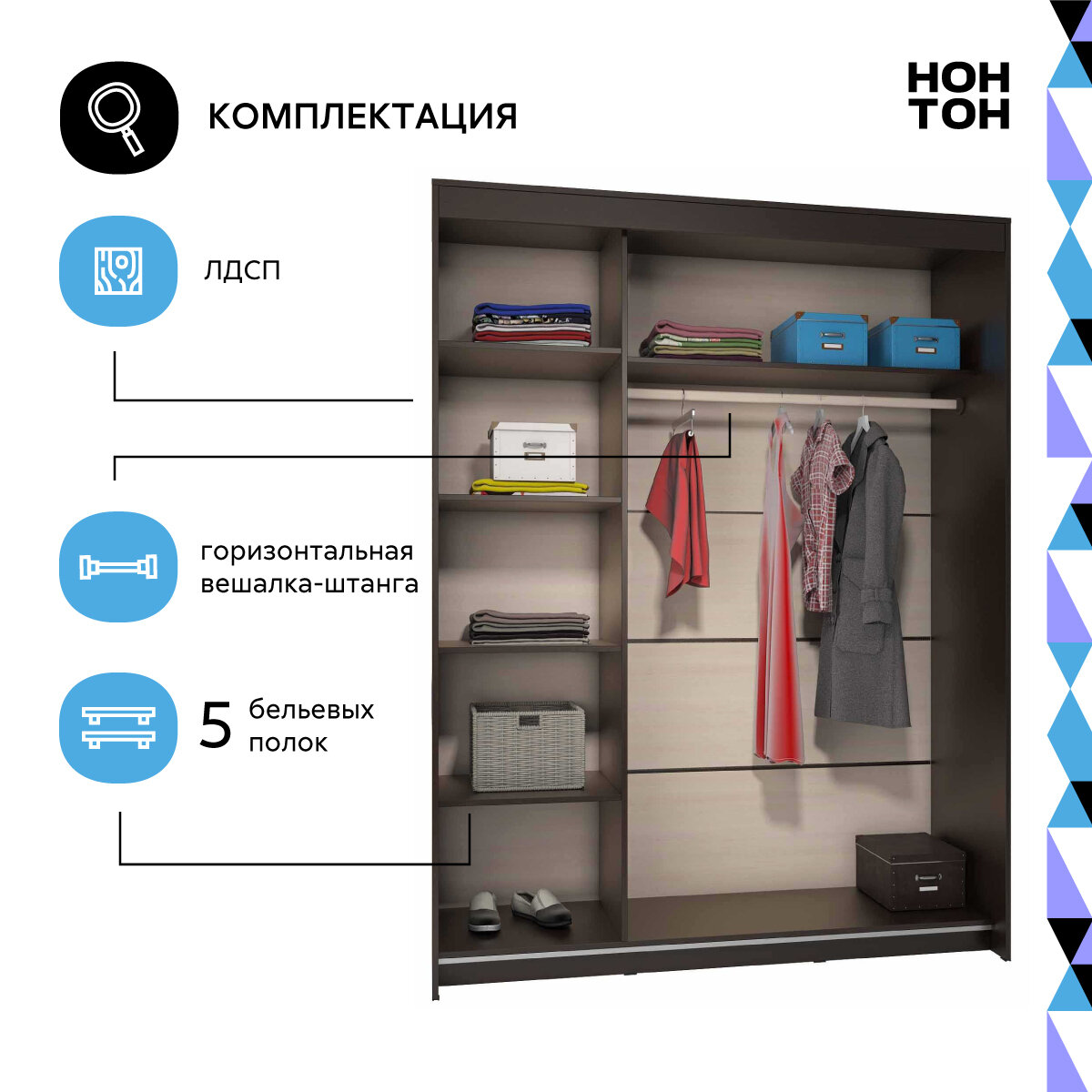 Шкаф-купе для одежды Нонтон Эва, венге / дуб сонома светлый 160 см информация: