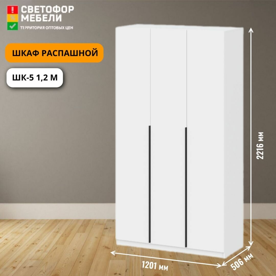 Шкаф распашной Мебельный рай ШК 5 1,2м 1201х2216х506, Белый текстурный информация: