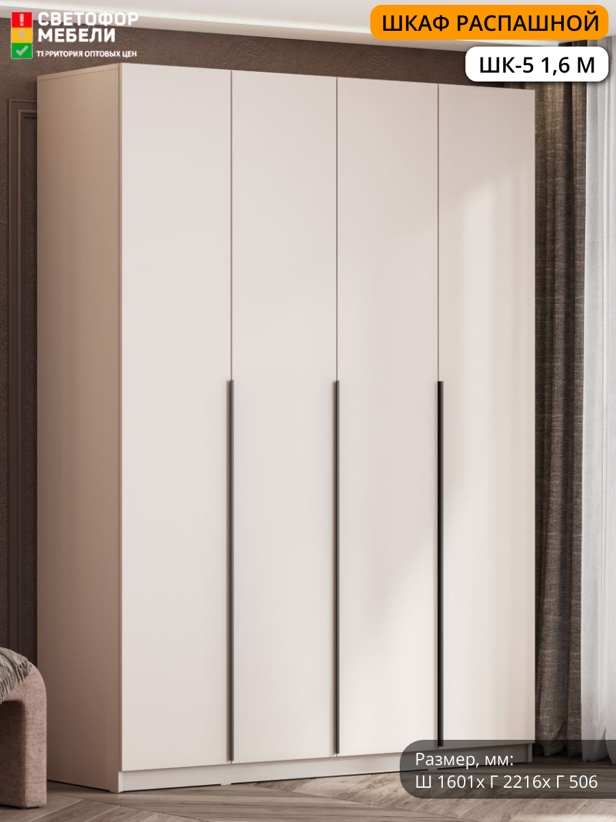Шкаф распашной Мебельный рай ШК-5 1,6 1601х2216х506, Белый текстурный 15 454 ₽
