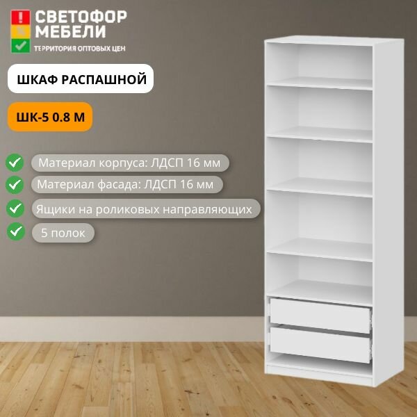 Шкаф распашной Мебельный рай ШК 5 0.8 м с 2-мя ящиками и полками 801х2216х506, Белый информация: