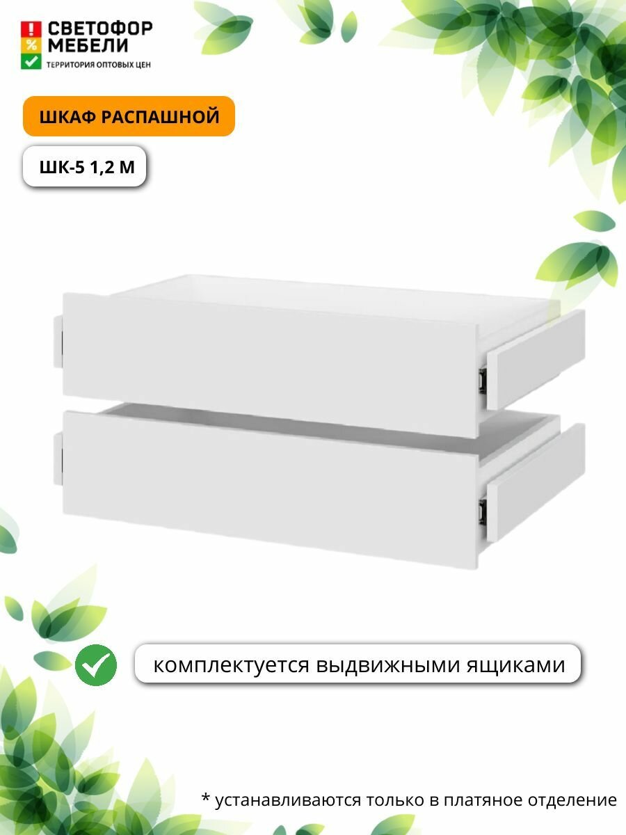 Шкаф распашной Мебельный рай ШК 5 1,2м 1201х2216х506, Белый текстурный, с комплектом доп. полок и ящиками информация: