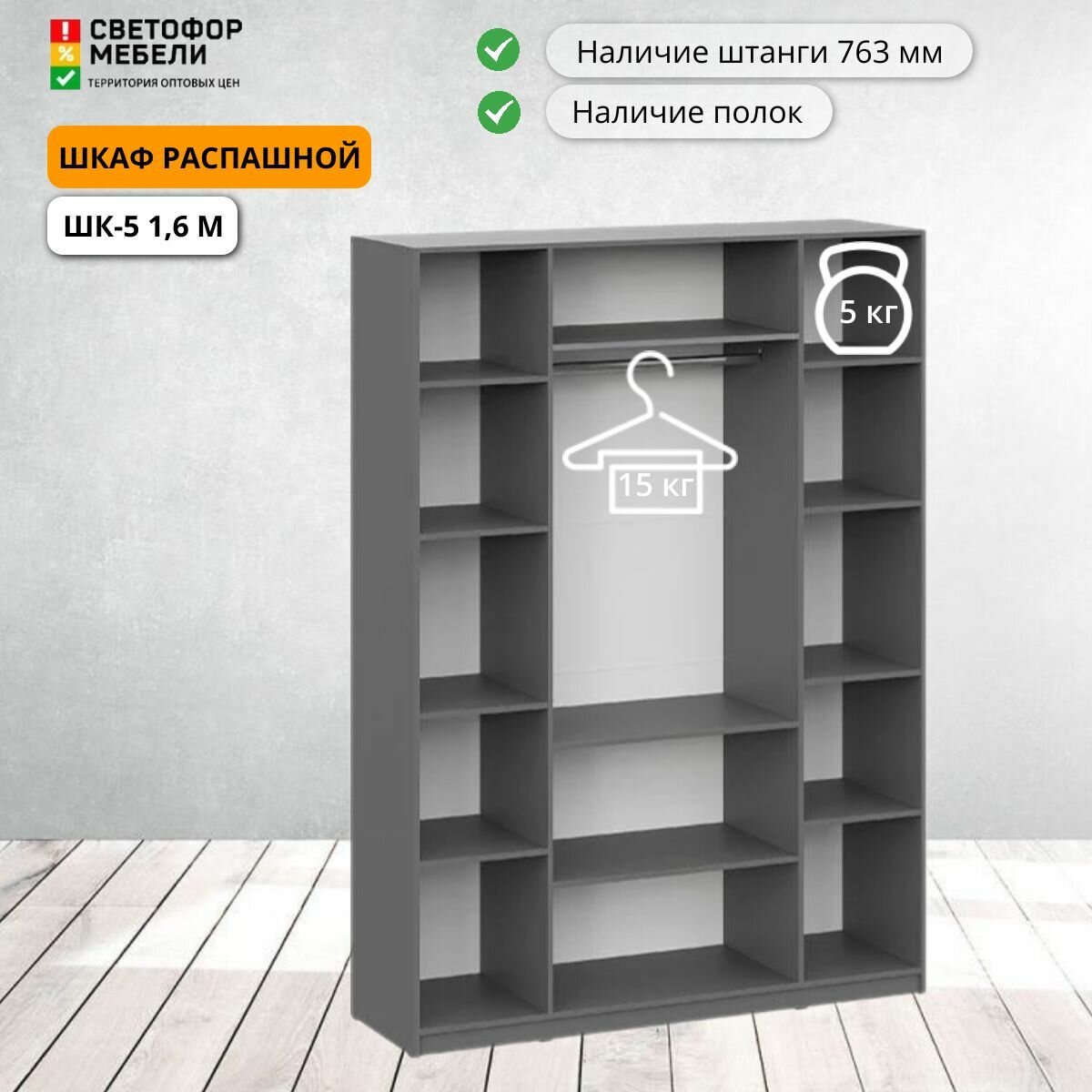 Шкаф распашной Мебельный рай ШК-5 1,6 1601х2216х506, Графит, с комплектом полок информация: